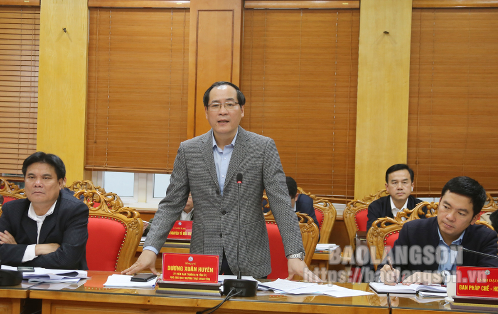 Đồng chí Dương Xuân Huyên, Ủy viên Ban Thường vụ Tỉnh ủy, Phó Chủ tịch Thường trực UBND tỉnh phát biểu tại buổi làm việc với đoàn kiểm tra. Ảnh: Baolangson.vn
