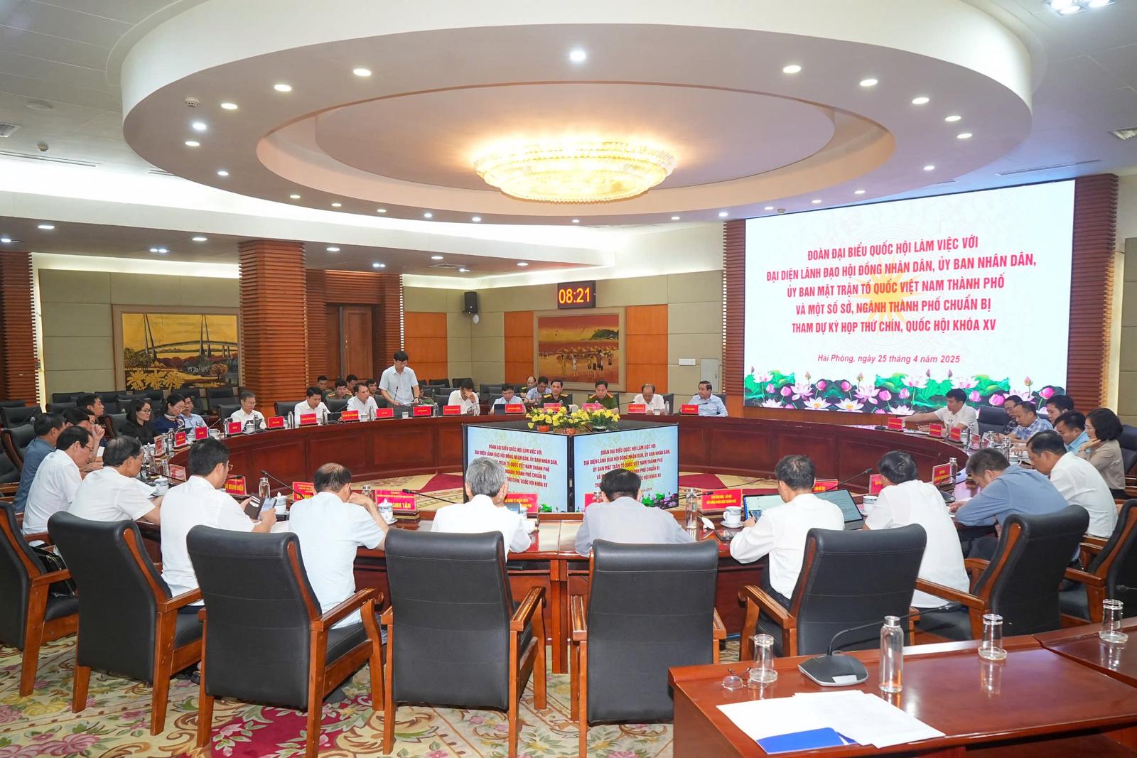 Đoàn đại biểu Quốc hội Hải Phòng làm việc với lãnh đạo thành phố Hải Phòng. Ảnh: KT