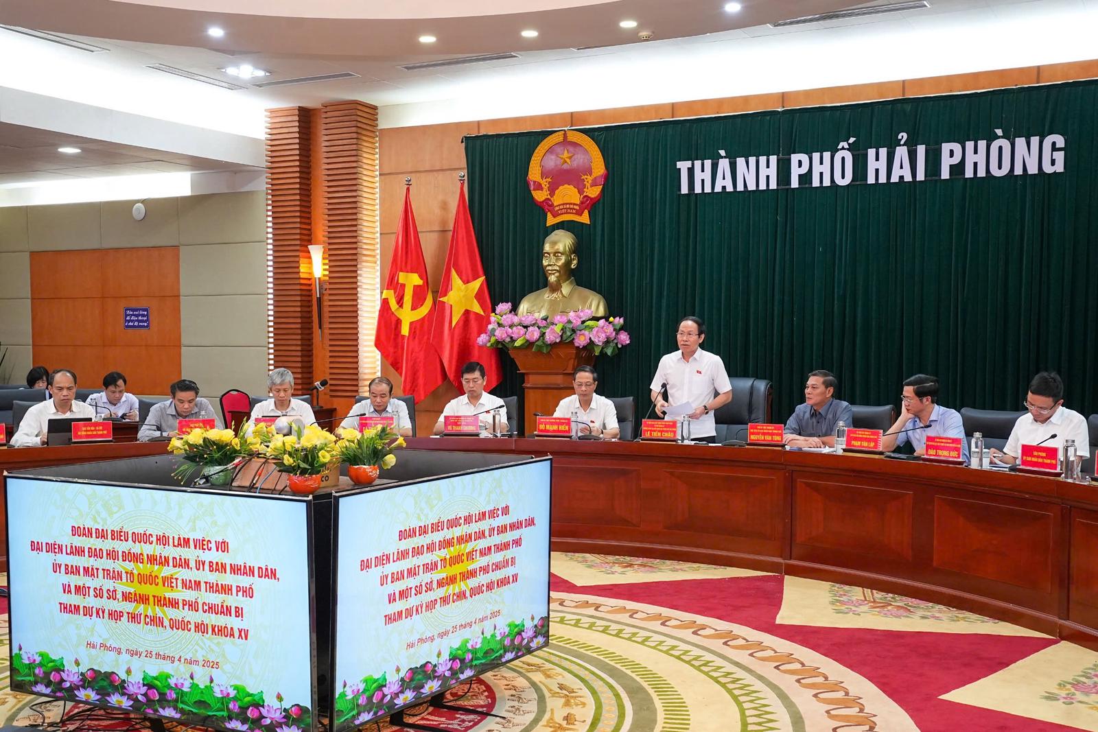 Bí thư Thành ủy Lê Tiến Châu, Trưởng Đoàn đại biểu Quốc hội thành phố Hải Phòng ghi nhận và đánh giá cao các ý kiến đóng góp của các đại biểu dự họp, đồng thời thông tin: Kỳ họp thứ 9 tới sẽ được tổ chức sớm hơn 2 tuần và kéo dài hơn 15 ngày so với các kỳ họp trước, với nhiều nội dung quan trọng. Thông qua hội nghị lần này, Đoàn đại biểu Quốc hội thành phố tiếp tục ghi nhận các khó khăn, vướng mắc, những điểm nghẽn và bất cập trong quá trình triển khai thực tiễn tại địa phương để tổng hợp, báo cáo, kiến nghị tại diễn đàn Quốc hội.