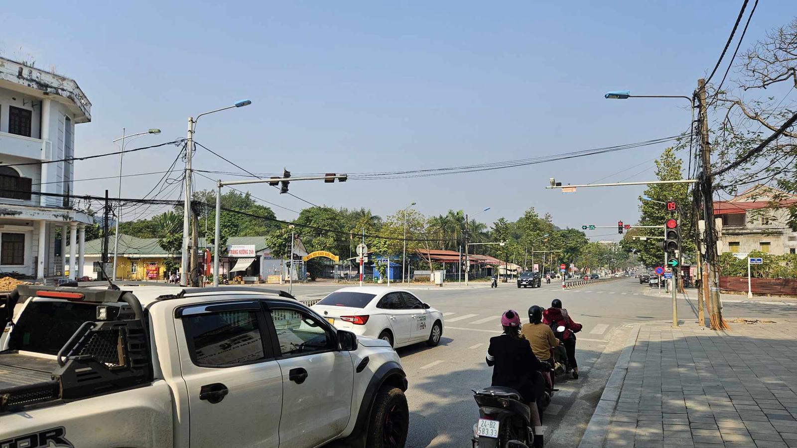 Các phương tiện tham gia giao thông nghiêm chỉnh chấp hành tín hiệu đèn giao thông tại đường Trần Hưng Đạo, TP Lào Cai. Ảnh: ND