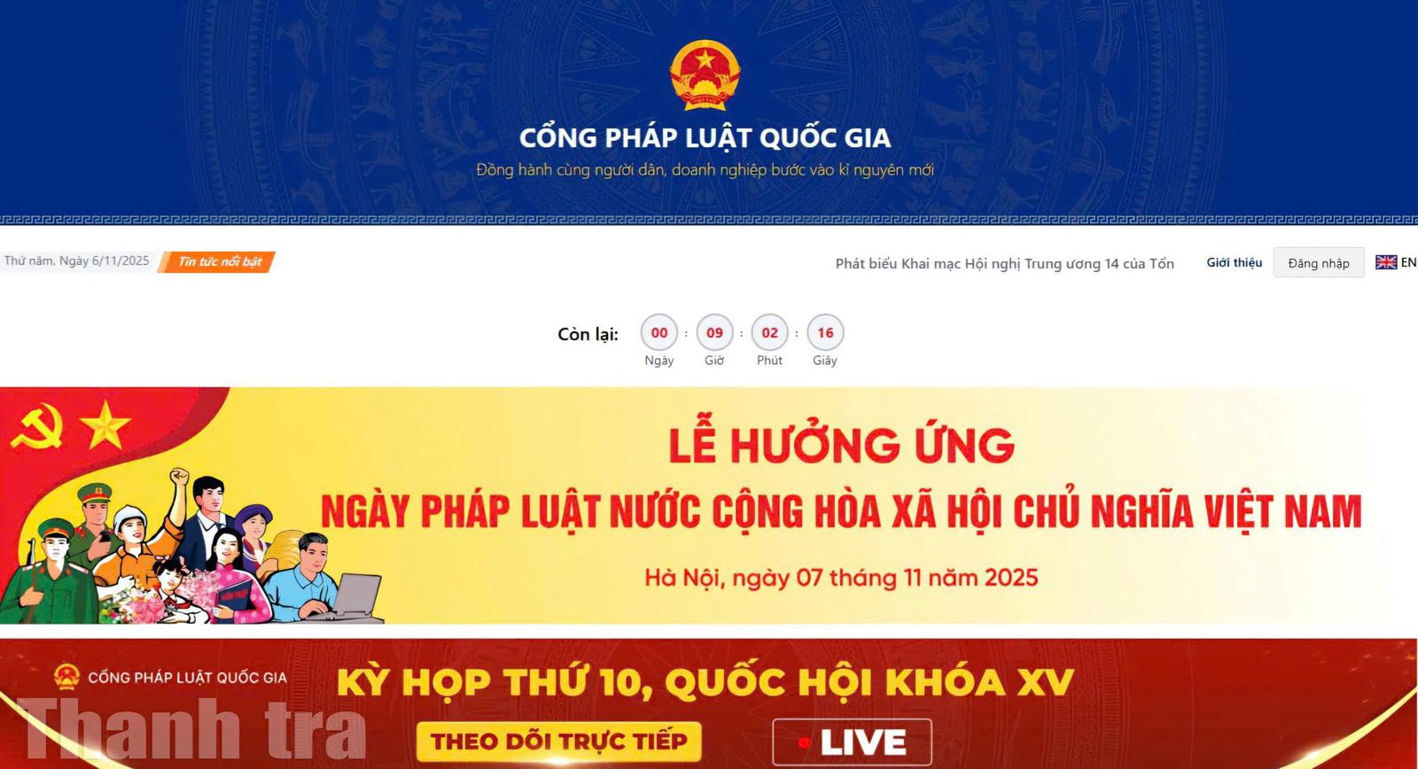 Truy cập Cổng Pháp luật quốc gia tại địa chỉ phapluat.gov.vn để theo dõi lễ hưởng ứng. Ảnh: TM