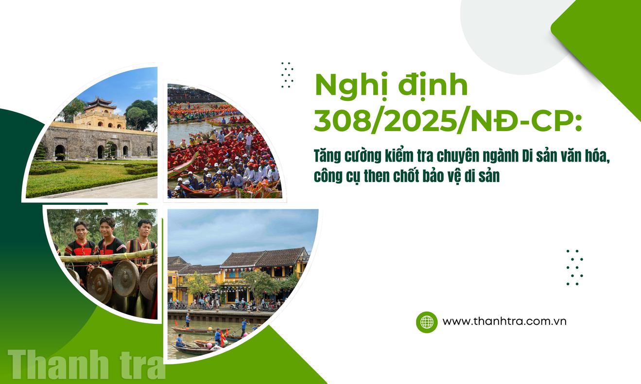 (Thanh tra) - Nghị định số 308/2025/NĐ-CP của Chính phủ quy định chi tiết một số điều và biện pháp tổ chức, hướng dẫn thi hành Luật Di sản văn hóa. Trong đó, hoạt động kiểm tra chuyên ngành lĩnh vực di sản văn hóa đóng vai trò quan trọng trong việc đảm bảo sự tuân thủ pháp luật và nâng cao hiệu quả quản lý.