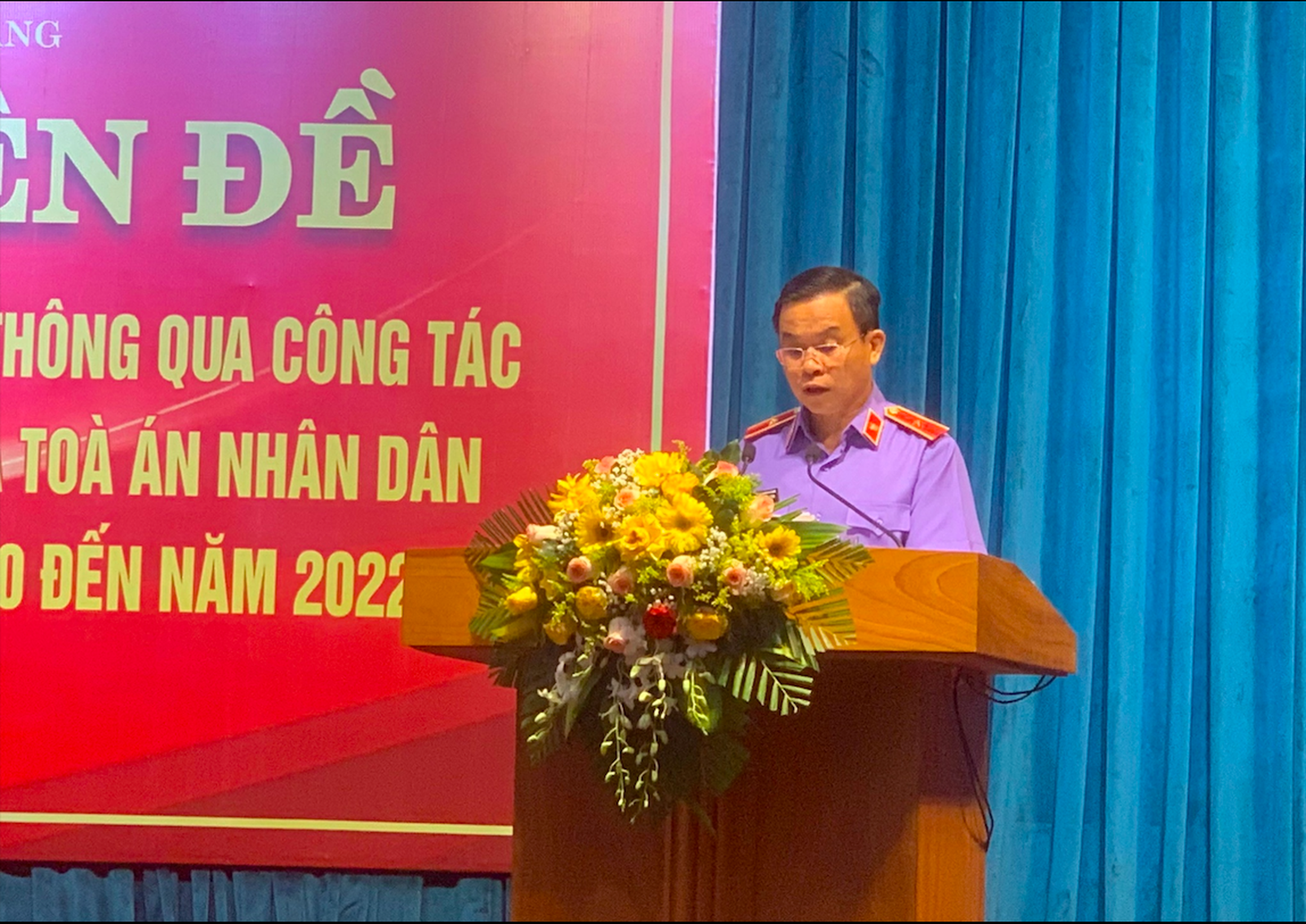 Ông Phan Văn Tâm, Phó Viện trưởng Viện KSND Cấp cao tại Đà Nẵng trình bày tham luận tại hội nghị. Ảnh: Bảo Trân
