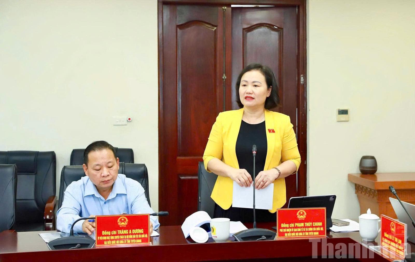Phát biểu tại hội nghị, Trưởng đoàn Đại biểu Quốc hội chuyên trách tỉnh Tuyên Quang Lý Thị Lan nhấn mạnh, kỳ họp thứ 10, Quốc hội khóa XV (dự kiến diễn ra từ 20/10 đến 12/12/2025) có khối lượng công việc lớn và mang ý nghĩa lịch sử. Quốc hội sẽ xem xét, thông qua kỷ lục 45 dự thảo luật, nghị quyết và 13 nhóm nội dung quan trọng khác. Trưởng đoàn Đại biểu Quốc hội chuyên trách tỉnh Tuyên Quang khẳng định, nhóm dự án luật, pháp lệnh do Bộ Công an chủ trì có vai trò đặc biệt quan trọng, phạm vi tác động sâu rộng, liên quan trực tiếp đến quyền con người, quyền công dân, an ninh dữ liệu và trách nhiệm của nhiều cơ quan, tổ chức.