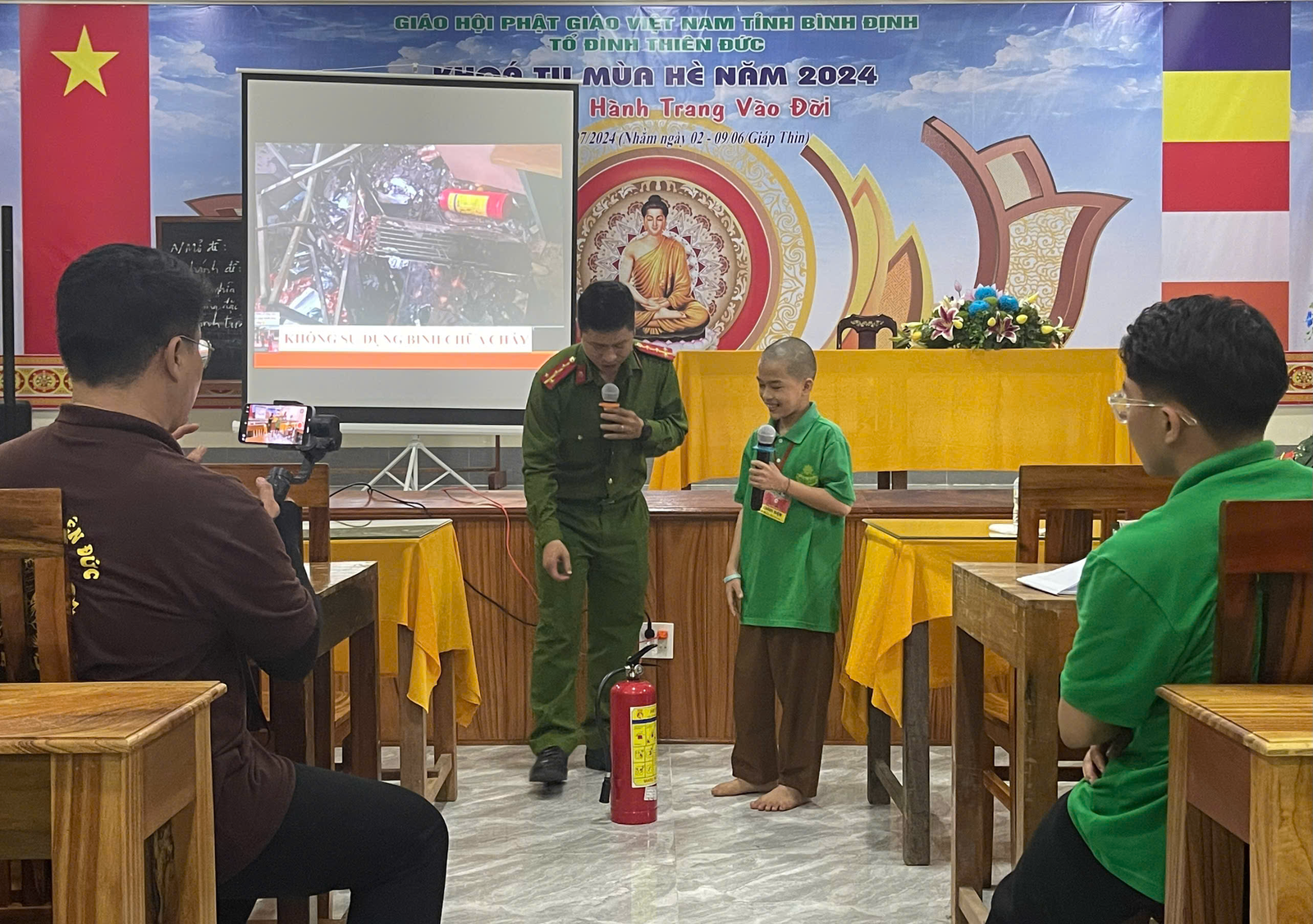 (Thanh tra) - Ngày 9/7, Công an huyện Tuy Phước và Ban Trị sự Giáo hội Phật giáo Việt Nam huyện Tuy Phước phối hợp tổ chức tuyên truyền, phổ biến, vận động tăng, ni, Phật tử tham gia bảo đảm an ninh trật tự. Các nội dung về an toàn giao thông; phòng, chống ma túy; thủ đoạn lừa đảo qua không gian mạng; nguyên nhân và cách xử lý khi có cháy nổ.