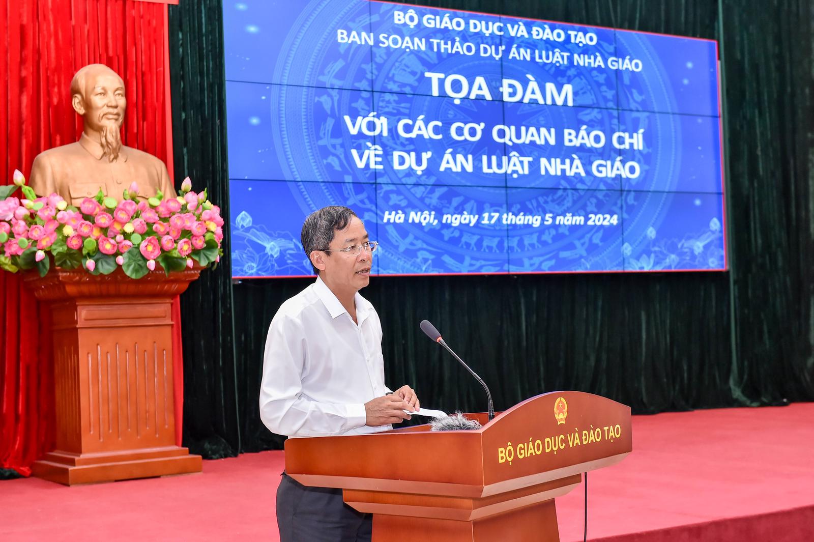 (Thanh tra) - Thứ trưởng Bộ Giáo dục và Đào tạo (GDĐT) Phạm Ngọc Thưởng đã nhấn mạnh như vậy tại buổi tọa đàm với các cơ quan báo chí về Dự án Luật Nhà giáo diễn ra chiều ngày 17/5, tại Hà Nội. Đây là tọa đàm đầu tiên với cơ quan báo chí về Dự án Luật Nhà giáo.