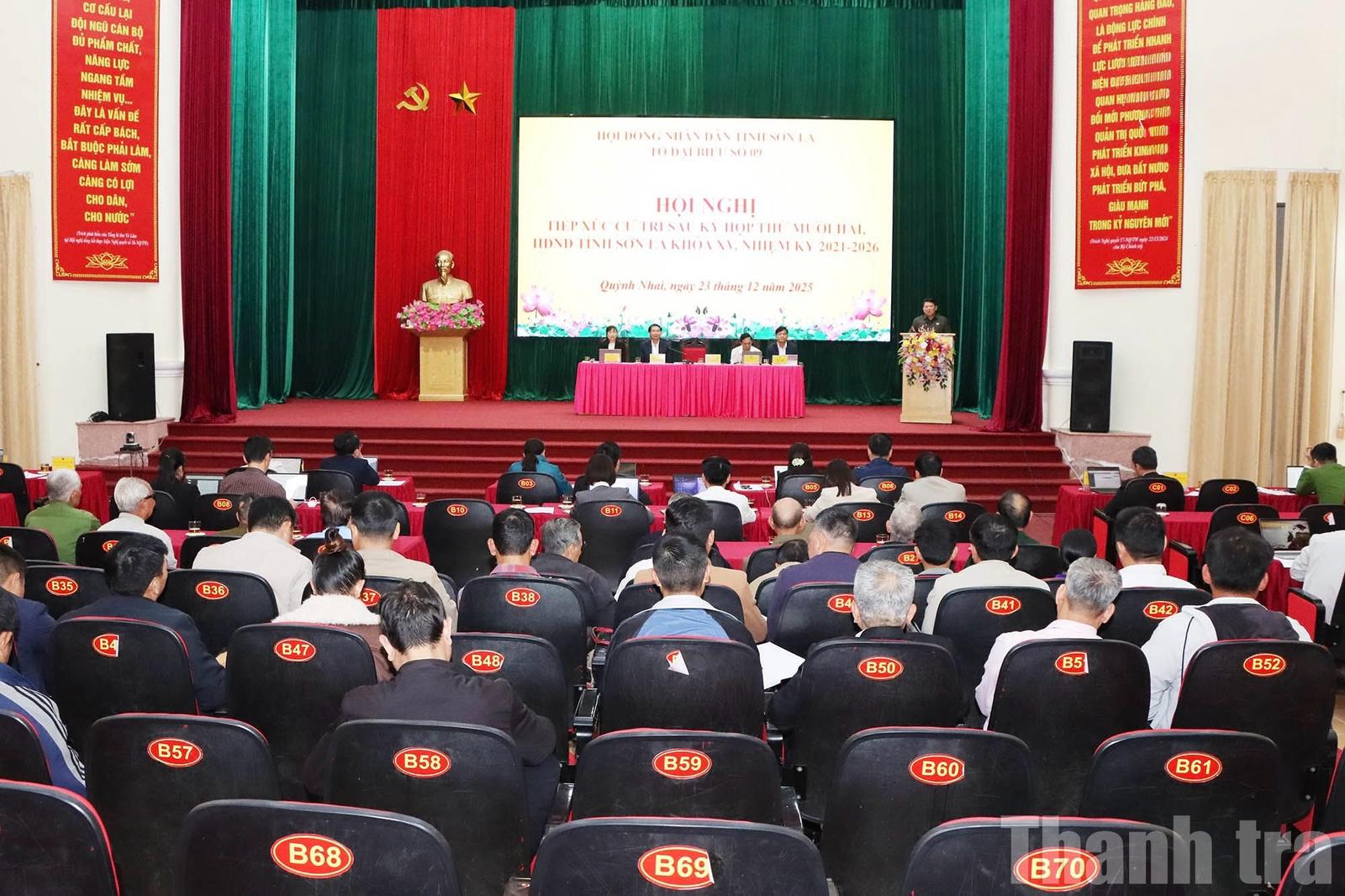 Tại hội nghị, đại diện Tổ đại biểu số 9, HĐND tỉnh Sơn La đã thông tin kết quả Kỳ họp chuyên đề lần thứ 37 và Kỳ họp thứ mười hai, HĐND tỉnh khóa XV, nhiệm kỳ 2021-2026 cũng như báo cáo giải quyết các ý kiến, kiến nghị của cử tri liên quan hoạt động tiếp xúc cử tri.