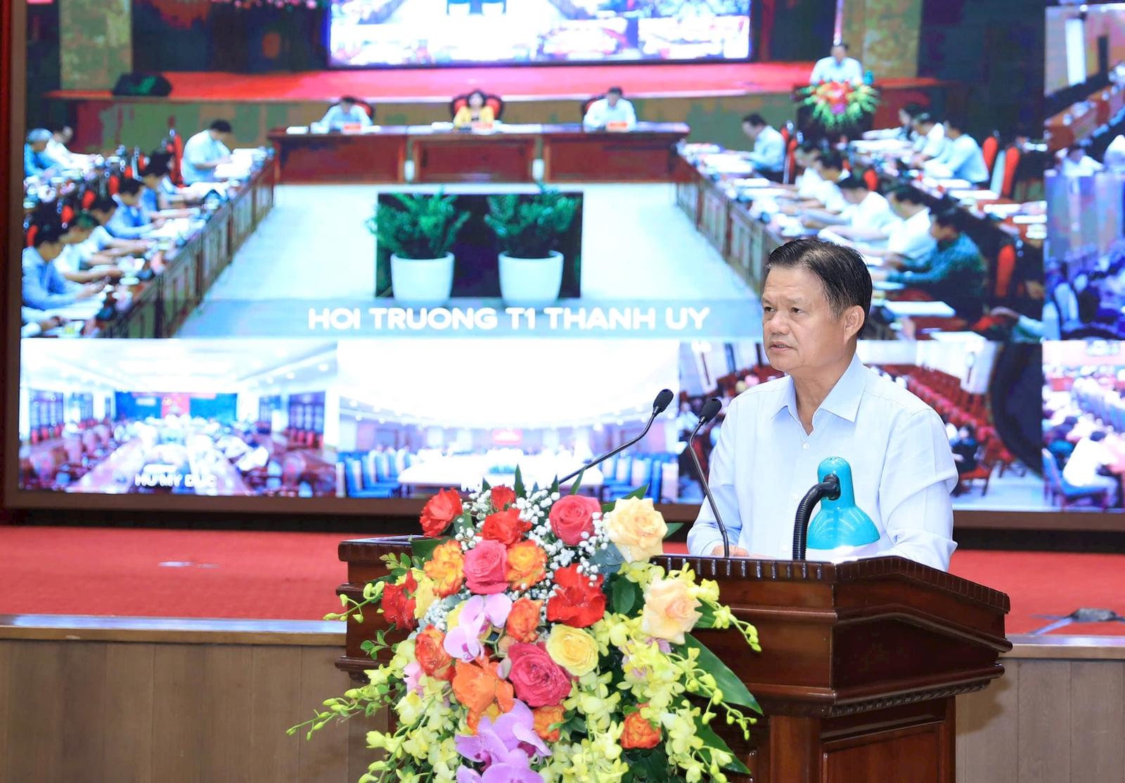 Trưởng ban Tổ chức Thành ủy Vũ Đức Bảo cho biết, công tác kiểm tra, giám sát, thanh tra công vụ được tăng cường, có trọng tâm, trọng điểm. Ảnh: Quang Thái