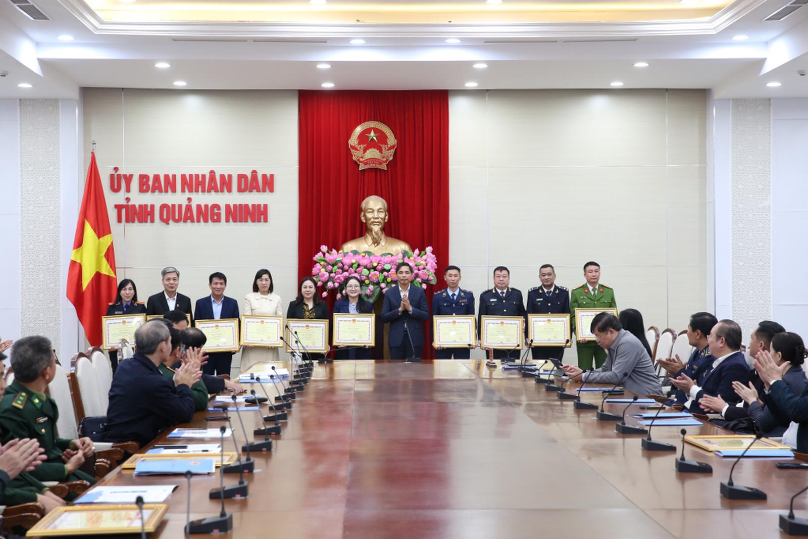 UBND tỉnh Quảng Ninh đã tặng Bằng khen cho các tập thể, cá nhân đạt thành tích xuất sắc trong công tác chống buôn lậu, gian lận thương mại và hàng giả năm 2024. Ảnh: TTTT