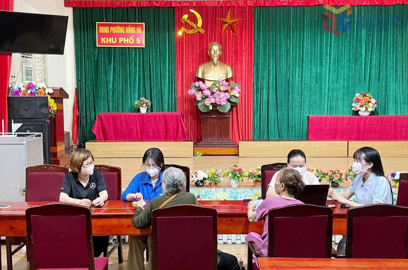 Đoàn viên thanh niên phường Hồng Hà, TP Hạ Long hướng dẫn người dân góp ý vào dự thảo Nghị quyết trên ứng dụng định danh điện tử VNeID. Ảnh: TTTT