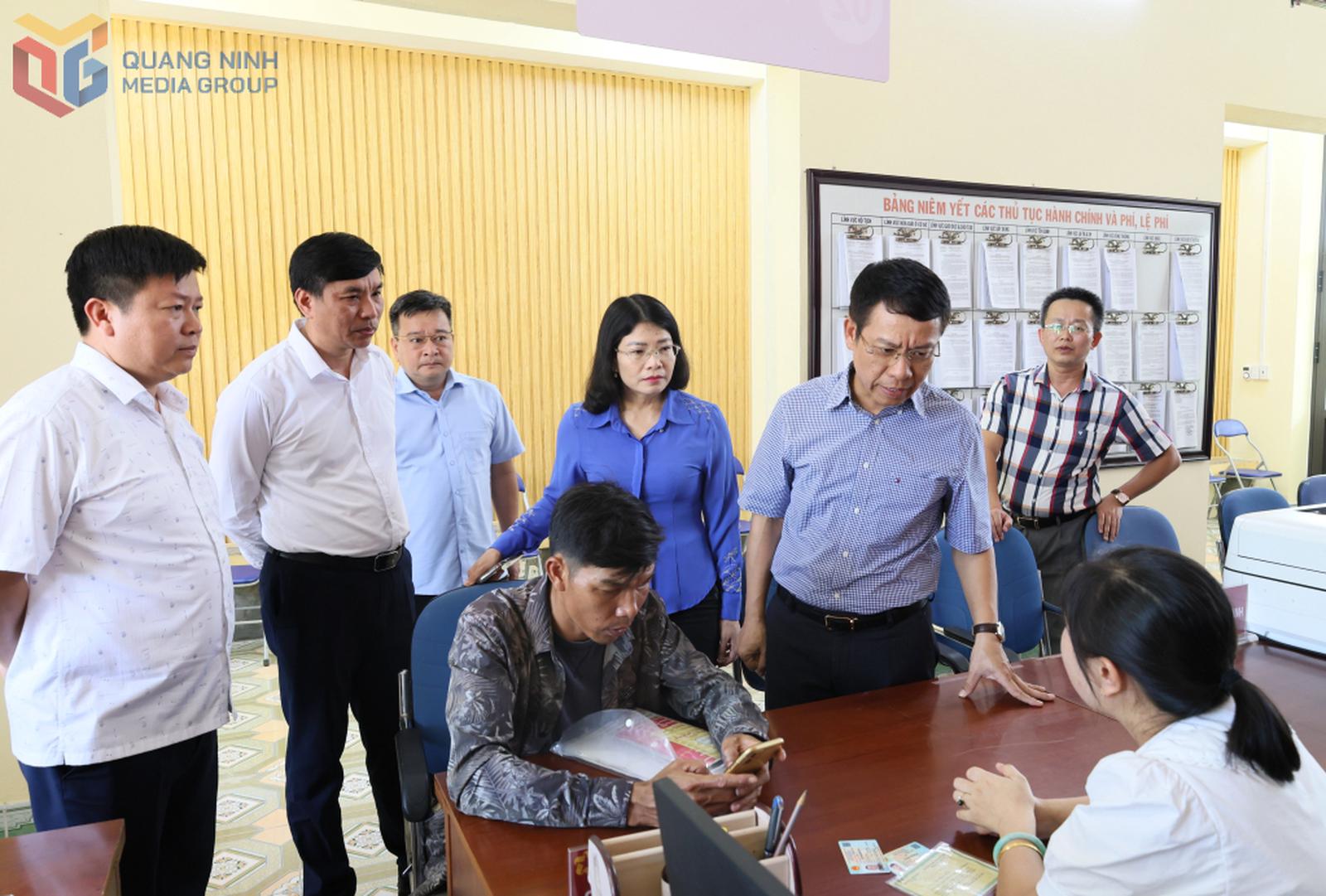 Trưởng Ban Tuyên giáo và Dân vận Tỉnh ủy Nguyễn Hồng Dương kiểm tra thực tế tại Trung tâm phục vụ hành chính công xã Quảng Tân, huyện Đầm Hà. Ảnh: TTTT