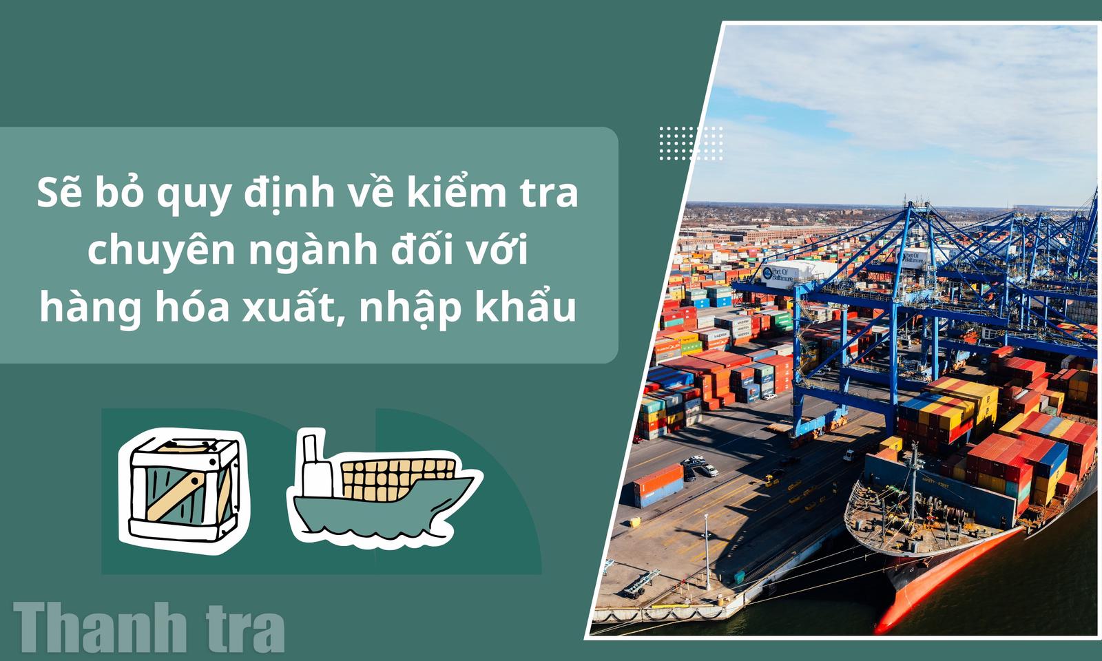 (Thanh tra) - Sẽ bãi bỏ các quy định về kiểm tra chuyên ngành đối với hàng hóa xuất khẩu, nhập khẩu, vì việc kiểm tra chuyên ngành đã được quy định đầy đủ tại pháp luật quản lý chuyên ngành như Luật Hóa chất, Luật Chất lượng sản phẩm hàng hóa, Luật An toàn thực phẩm, Luật Tiêu chuẩn và quy chuẩn kỹ thuật…
