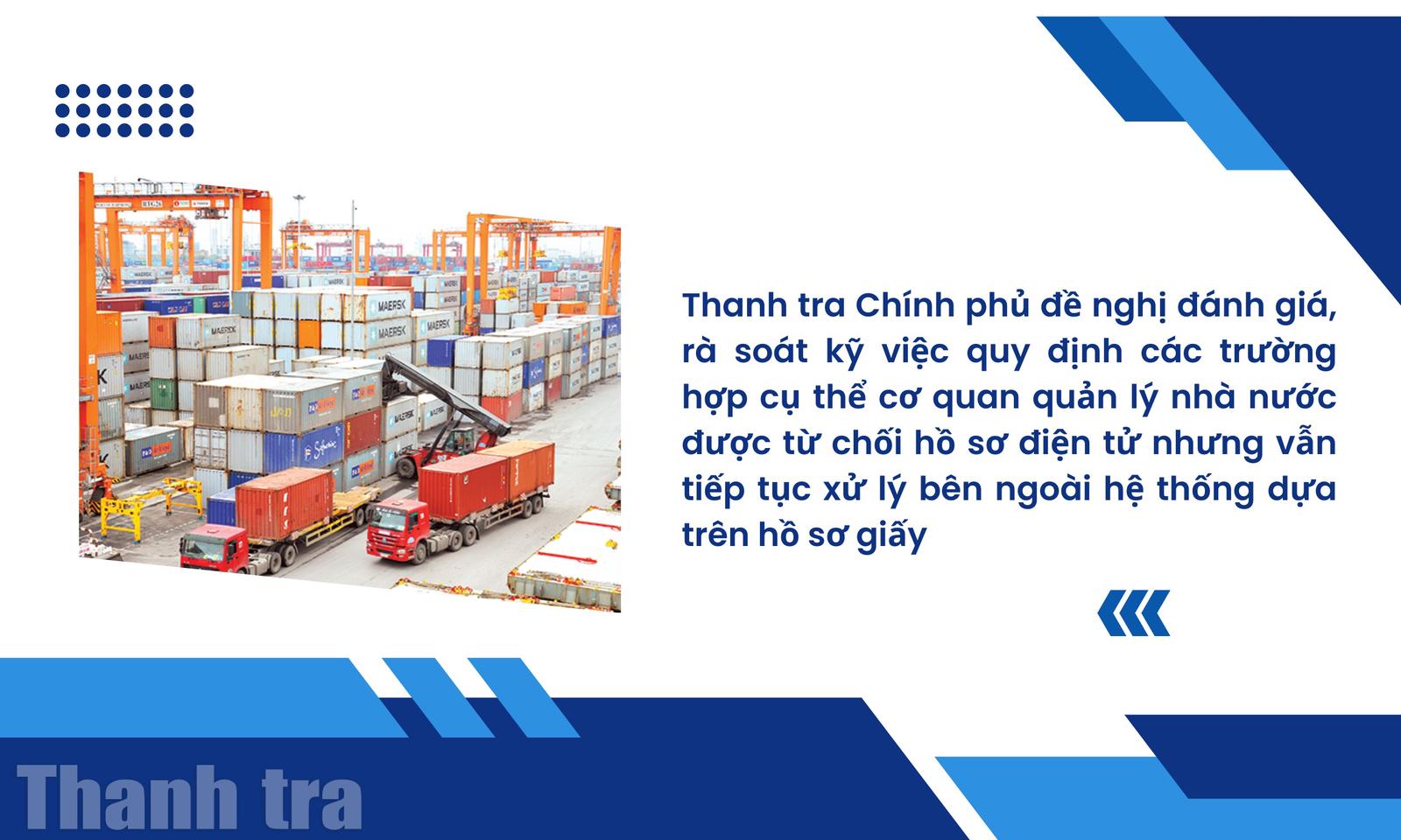Do đó, cần rà soát các tình huống thực tế đã áp dụng quy định này từ khi thực hiện Nghị định số 85/2019/NĐ-CP; mức độ đáp ứng của hệ thống công nghệ thông tin hiện nay và các quy định pháp luật hiện hành. Trên cơ sở đó, quy định các trường hợp cụ thể cơ quan quản lý nhà nước được từ chối hồ sơ điện tử nhưng vẫn tiếp tục xử lý bên ngoài hệ thống dựa trên hồ sơ giấy hoặc đề xuất loại bỏ hoàn toàn việc giải quyết thủ tục hành chính theo phương thức này, để đảm bảo tính minh bạch và xác định rõ trách nhiệm, thẩm quyền của các cơ quan quản lý Nhà nước tại khu vực cửa khẩu.