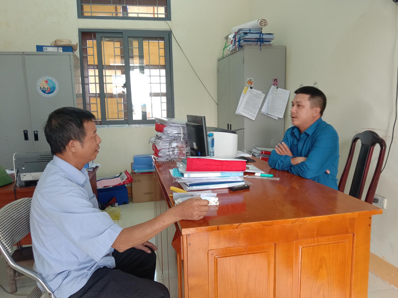 Cán bộ địa chính ở huyện Hưng Nguyên hướng dẫn các quy trình cấp GCNQSDĐ. Ảnh: XT