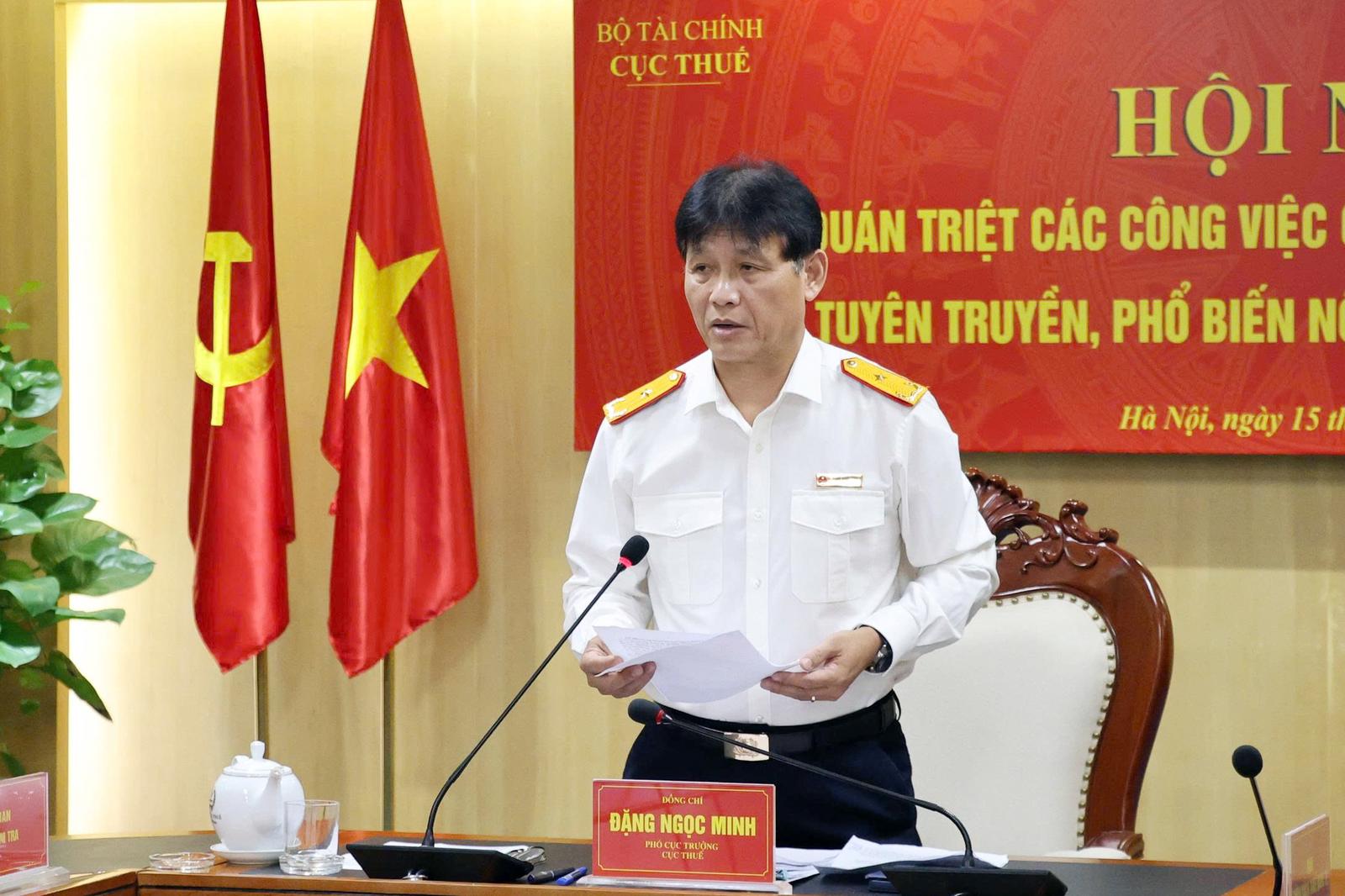 Phó Cục trưởng Cục Thuế Đặng Ngọc Minh đề nghị các Thuế tỉnh, thành phố tiếp tục chủ động nghiên cứu, nắm chắc nội dung Dự án Luật, dự báo những vấn đề tác động lớn đến người dân và doanh nghiệp; đồng thời, phối hợp với các cơ quan báo chí, truyền thông để tuyên truyền kịp thời, chính xác, góp phần định hướng dư luận, tạo sự đồng thuận của xã hội.