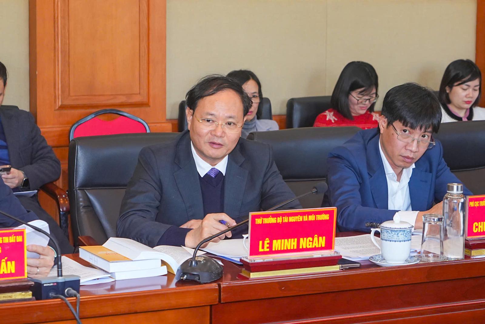 Thứ trưởng Bộ TN&MT Lê Minh Ngân phát biểu tại cuộc làm việc. Ảnh: KT
