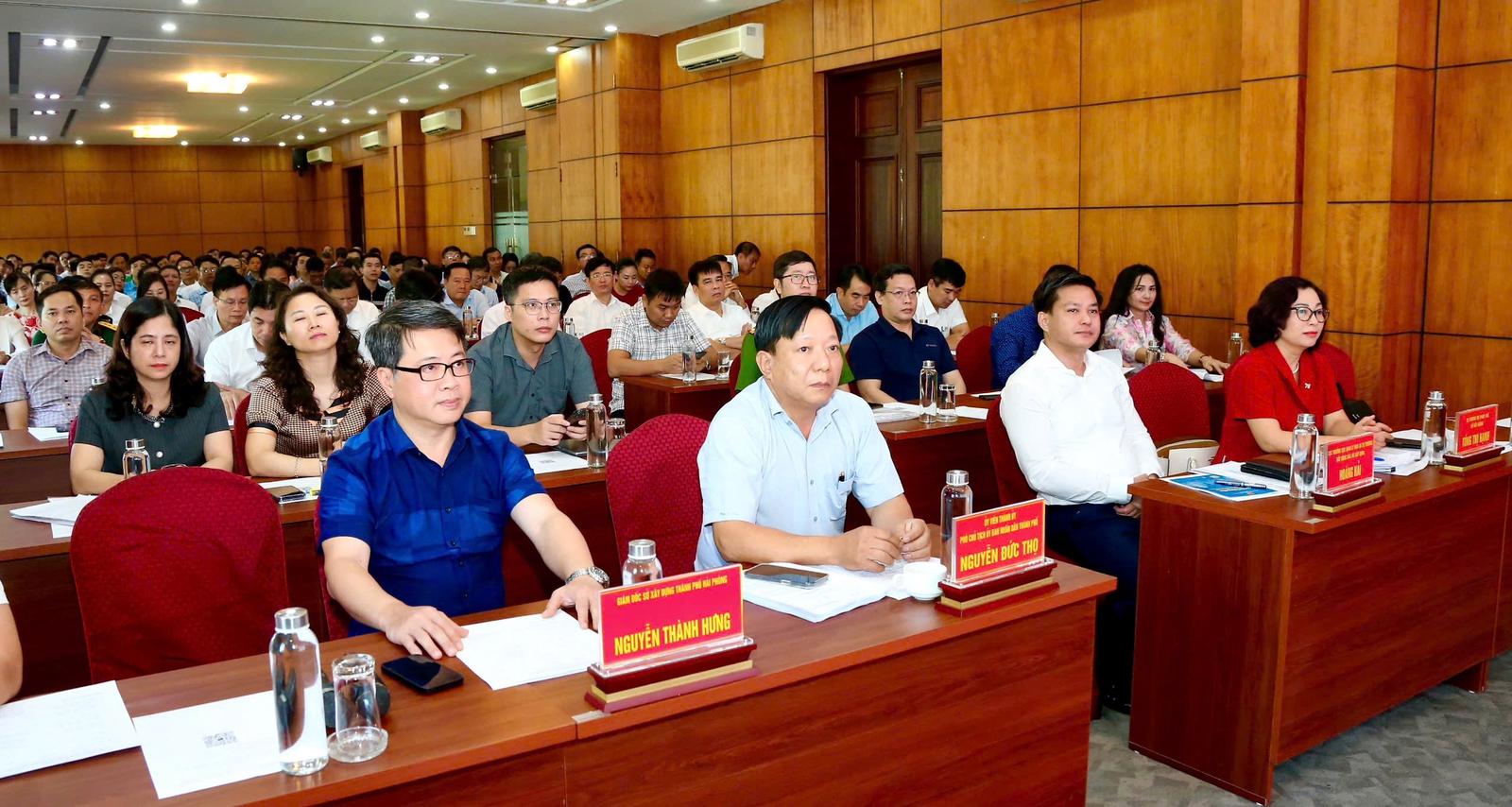 Phó Chủ tịch UBND thành phố Nguyễn Đức Thọ cùng các đại biểu dự hội nghị. Ảnh: KT