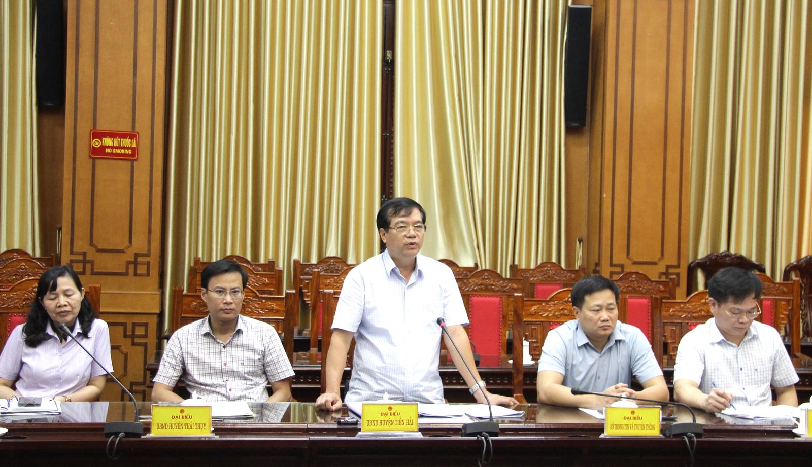Đại diện UBND huyện Tiền Hải phát biểu ý kiến tại hội nghị. Ảnh: TT