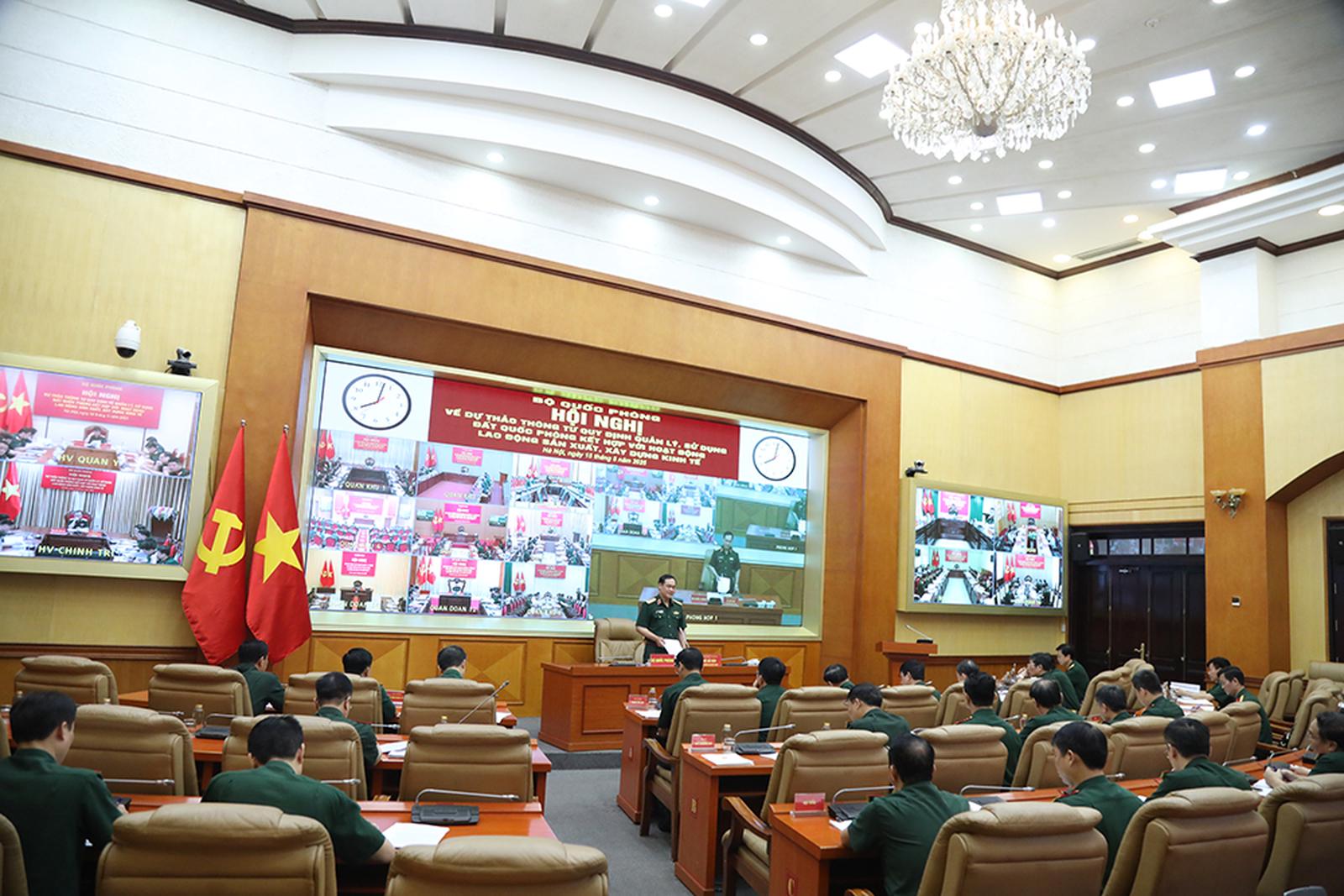 Nhiều ý kiến đóng góp sâu sắc, sát thực tiễn được đựa ra tại hội nghị về Dự thảo Thông tư quy định quản lý, sử dụng đất quốc phòng kết hợp với hoạt động lao động sản xuất, xây dựng kinh tế. Ảnh: Bộ Quốc phòng