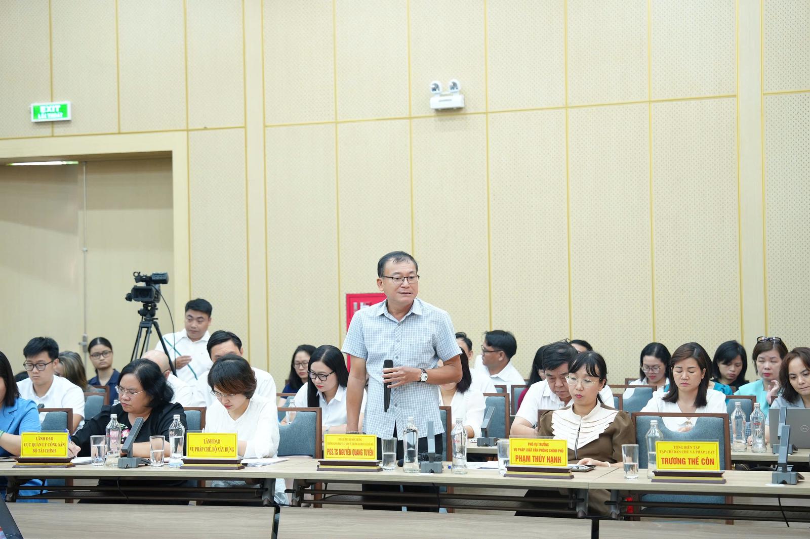 PGS. TS Nguyễn Quang Tuyến, Phó chủ tịch Hội đồng Trường, Trưởng khoa Pháp luật Kinh tế, Đại học Luật Hà Nội nêu ý kiến tại hội thảo. Ảnh: BTP