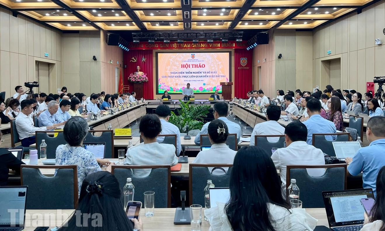 Báo cáo dẫn đề tại hội thảo, Phó Cục trưởng Cục Quản lý đất đai, Bộ Nông nghiệp và Môi trường Đoàn Thị Thanh Mỹ thông tin, thời gian qua, Bộ Nông nghiệp và Môi trường đã tổng hợp những khó khăn, vướng mắc trong lĩnh vực đất đai và phân thành 2 nội dung về: Những quy phạm pháp luật đất đai trước ngày 1/8/2024; liên quan đến phân cấp, phân quyền, phân định thẩm quyền trong lĩnh vực đất đai và điều kiện, nguồn lực đất đai.