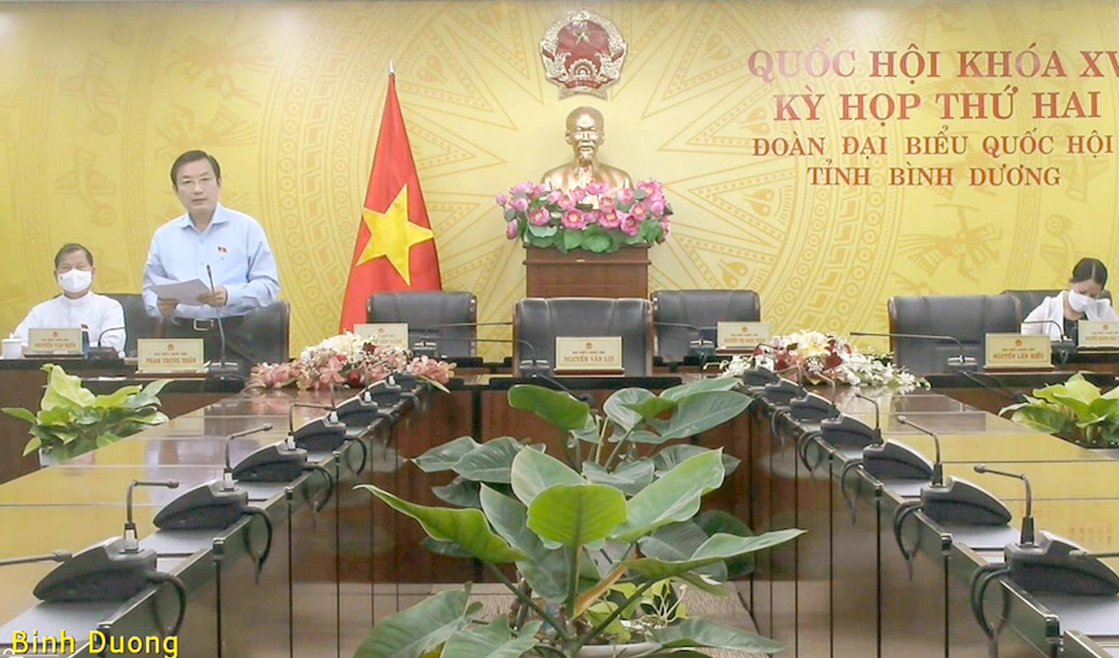 Đại biểu Phạm Trọng Nhân phát biểu từ điểm cầu Bình Dương. Ảnh: Đ.X