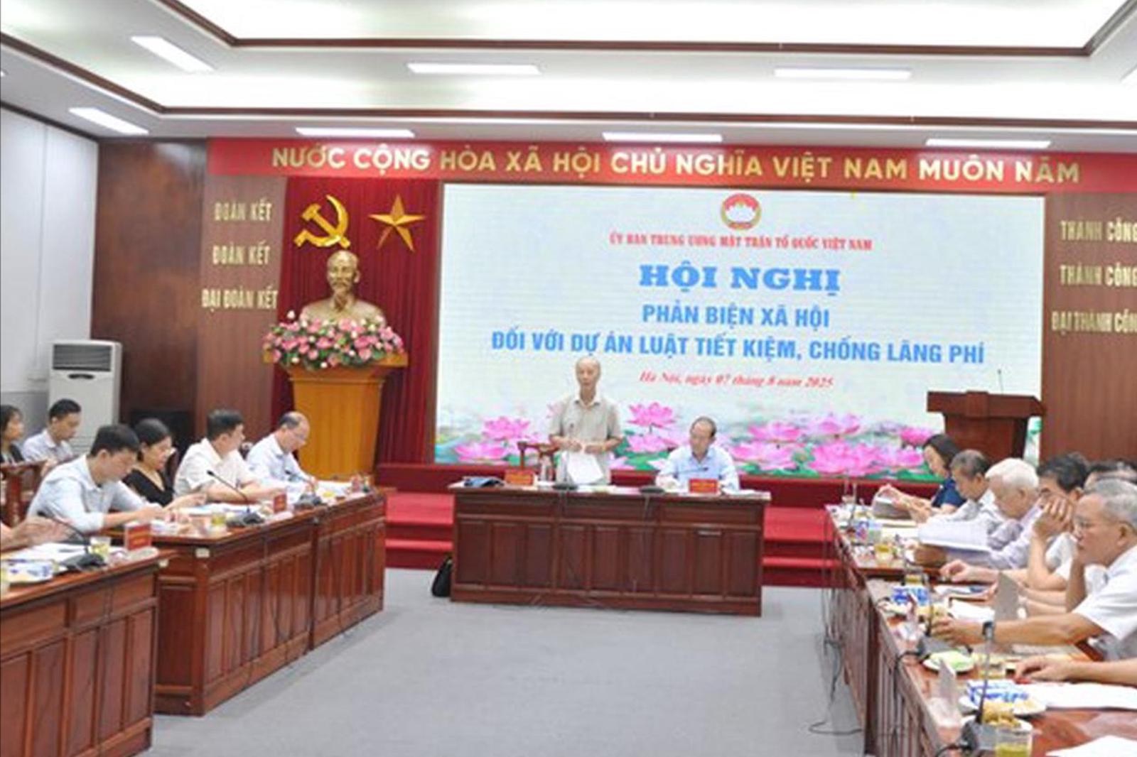 Hội nghị phản biện xã hội do Uỷ ban Trung ương Mặt trận Tổ quốc (MTTQ) Việt Nam tổ chức tập trung góp ý dự thảo Luật Tiết kiệm, chống lãng phí ngày 7/8/2025. Ảnh: Hương Điệp