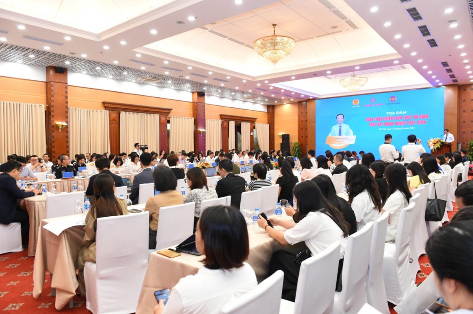 Tọa đàm “Hoàn thiện chính sách thuế, hải quan, thúc đẩy doanh nghiệp phát triển”. Ảnh: TC