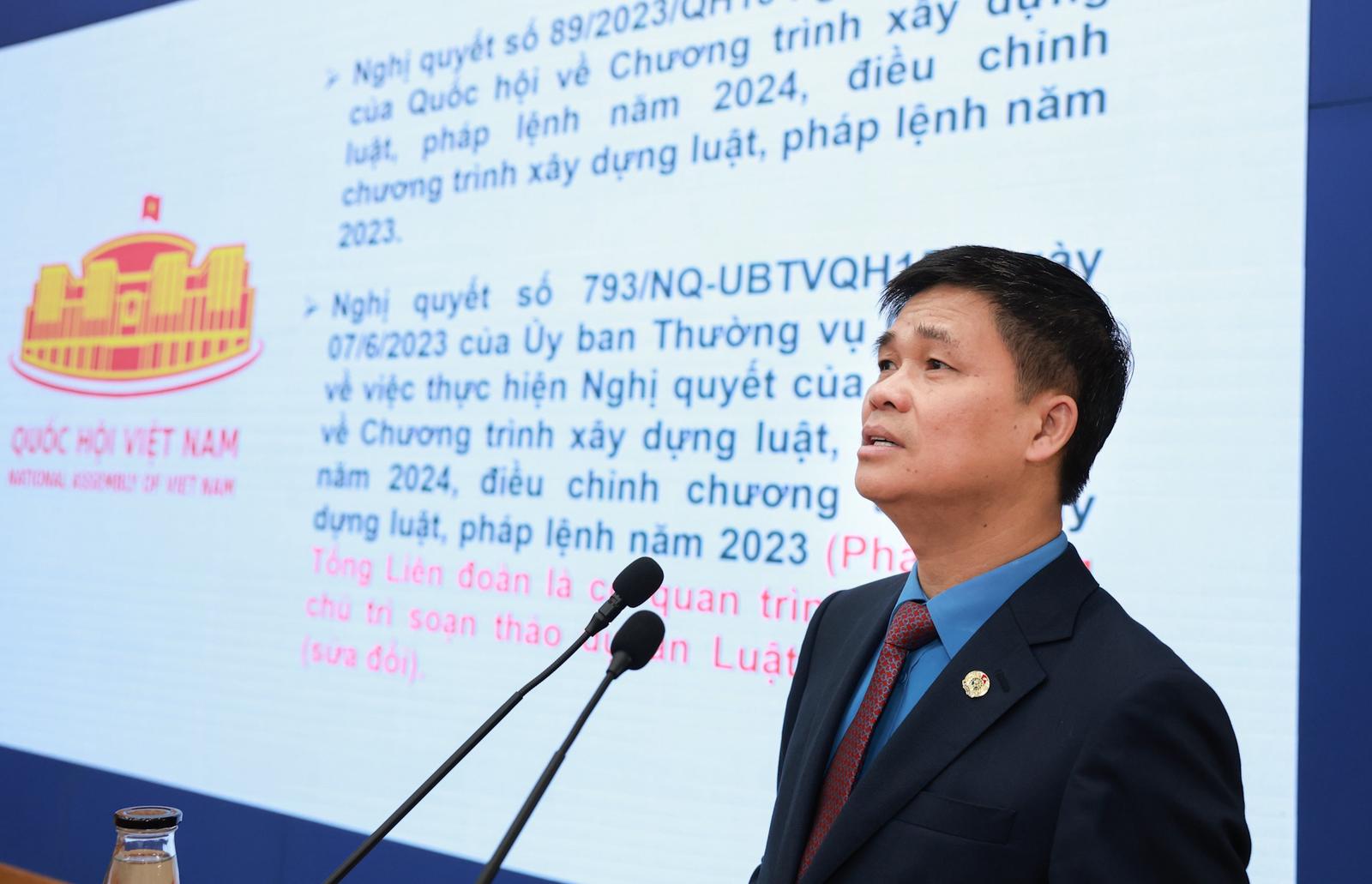 Ông Ngọ Duy Hiểu, Phó Chủ tịch Tổng Liên đoàn Lao động Việt Nam đã trình bày những điểm mới của Luật. Ảnh NĐ