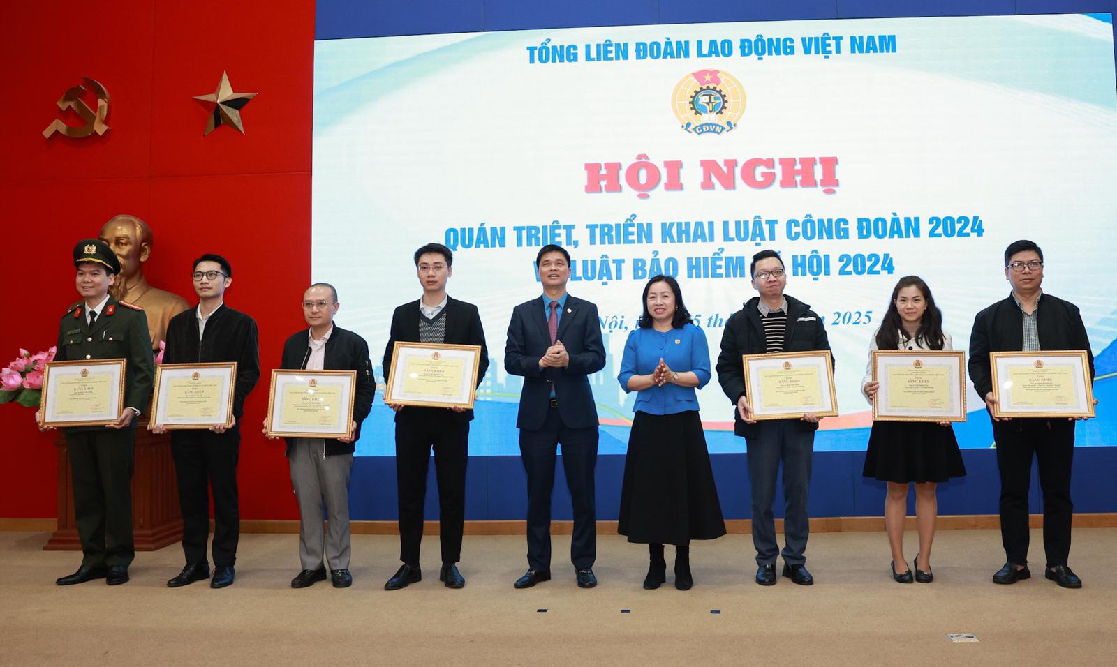 Tại hội nghị, Tổng Liên đoàn Lao động Việt Nam đã tặng Bằng khen cho 5 tập thể và 38 cái nhân có nhiều đóng góp trong hoạt động tham gia xây dựng Luật Công đoàn năm 2024.