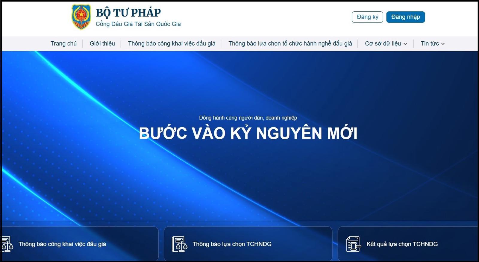 TPHCM kiến nghị Bộ Tư pháp kiểm tra và sớm nâng cấp Cổng Đấu giá tài sản quốc gia theo hướng hiện đại, thân thiện, phục vụ tốt hơn công tác quản lý. Ảnh chụp màn hình: Chu Tuấn