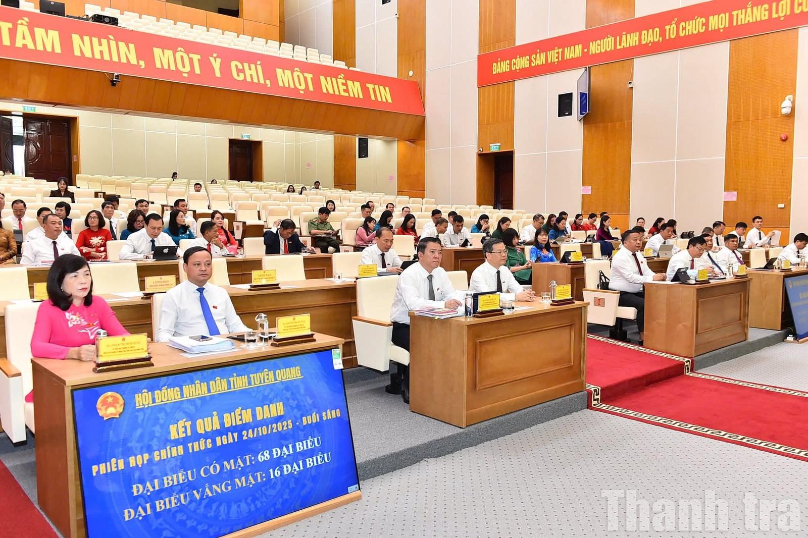 Tại kỳ họp, HĐND tỉnh Tuyên Quang đã xem xét, quyết định thông qua 16 nghị quyết với tỷ lệ tán thành cao. Các nghị quyết được thông qua đã bám sát chủ trương của Tỉnh ủy, Ban Thường vụ Tỉnh uỷ Tuyên Quang, tiếp tục cụ thể hóa các văn bản của Trung ương vào điều kiện thực tế của địa phương để kịp thời triển khai thực hiện, đáp ứng yêu cầu chỉ đạo, điều hành phát triển kinh tế - xã hội, bảo đảm quốc phòng - an ninh trên địa bàn tỉnh năm 2025 và những năm tiếp theo.