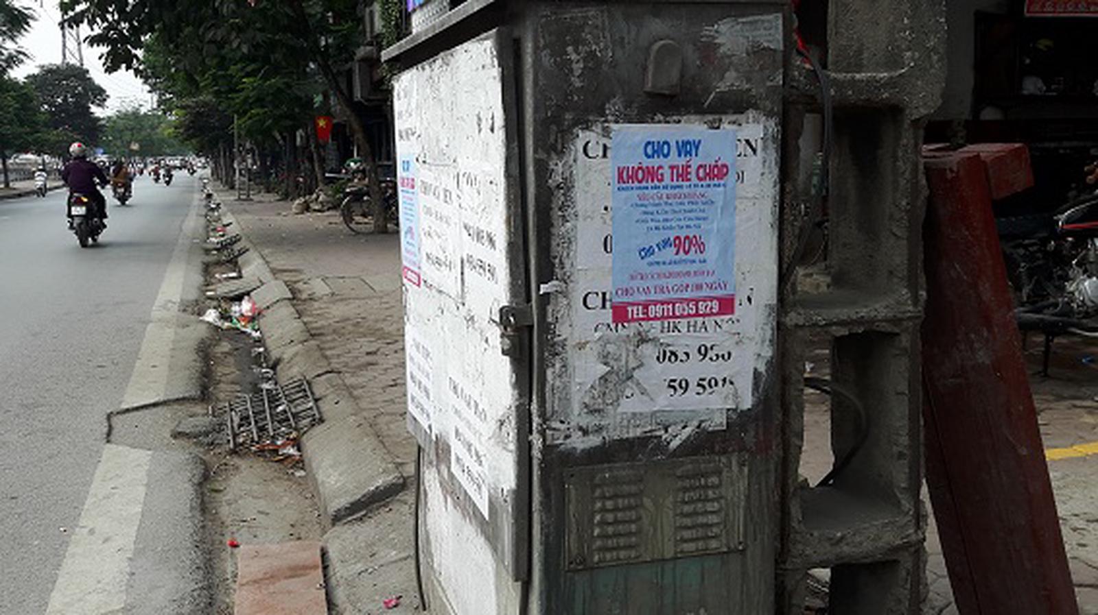 Dọc theo tuyến phố từ Tam Trinh đến Kim Ngưu, trong ngày 6/5/2017, tình trạng tờ rơi, thông tin quảng cáo, rao vặt đủ loại dịch vụ “đu” trạm biến áp, đến cột điện, trên bờ tường, cây xanh diễn ra phổ biến. Tại đầu ngõ 641 Kim Ngưu, thông tin rao vặt cho thuê nhà, cho vay tiền dán đầy cột điện trước ngõ. Tại nhiều con ngõ khu vực đường Lê Thanh Nghị nơi tập trung đông sinh viên thuê trọ thì dày đặc các thông tin rao vặt về tín dụng sinh viên, thuê phòng trọ, vay trả góp... được ví như “rác tường” đang bủa vây khu dân cư. Nhiều dịch vụ lắp đặt cáp quang, internet khác lại tập trung nhiều tại các khu chung cư cũ trên đường Giải Phóng, thậm chí còn “sáng tạo” hơn khi “đu” lơ lửng trên dây điện. Thậm chí, tại các ngã trục đường lớn như Đại Cồ Việt, ngã ba Trần Khát Chân – Lê Đại Hành, ngã tư Phố Huế - Trần Khát Chân nhiều tấm bạt quảng cáo cỡ lớn còn ngang nhiên treo tại cột đèn, cây xanh lớn với thông tin và hình ảnh quảng cáo về chương trình Live show của ca sĩ nổi tiếng.