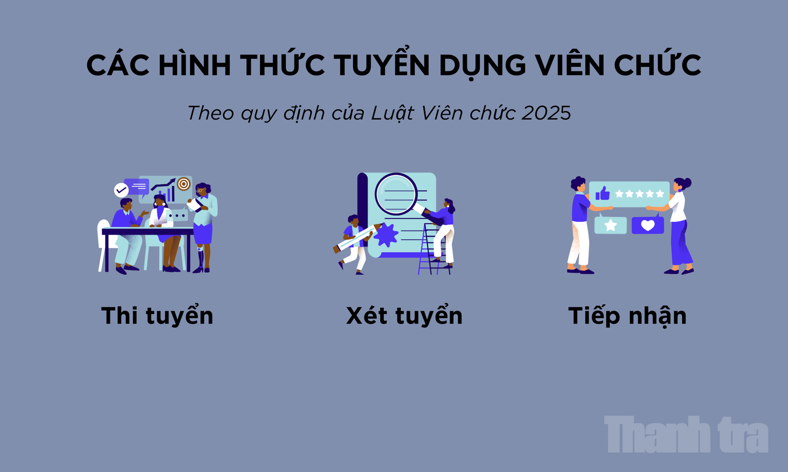 Nếu Luật Viên chức 2010 chỉ quy định hai phương thức cơ bản là thi tuyển và xét tuyển, thì Luật Viên chức 2025 đã mở rộng cơ chế tiếp nhận vào làm viên chức đối với một số nhóm đối tượng đặc thù.