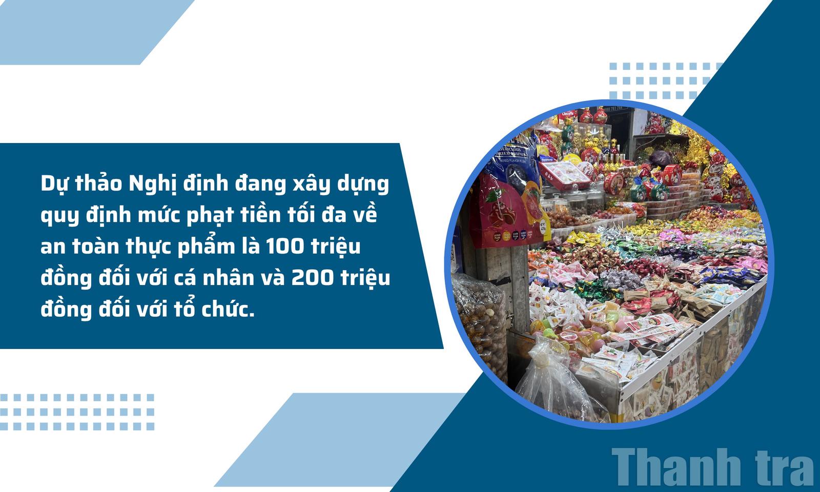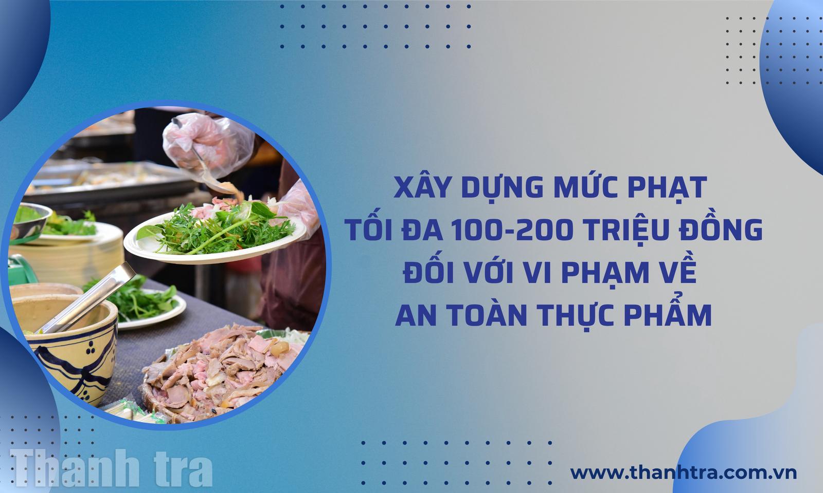 (Thanh tra) - Trước tình trạng phát sinh các hành vi vi phạm an toàn thực phẩm với tính chất, mức độ ngày càng tinh vi, phức tạp, trong khi mức phạt hiện nay còn thấp, không đủ tính răn đe, dự thảo Nghị định mới về xử phạt vi phạm hành chính về an toàn thực phẩm đang xây dựng quy định mức phạt tối đa là 100 triệu đồng đối với cá nhân và 200 triệu đồng đối với tổ chức.