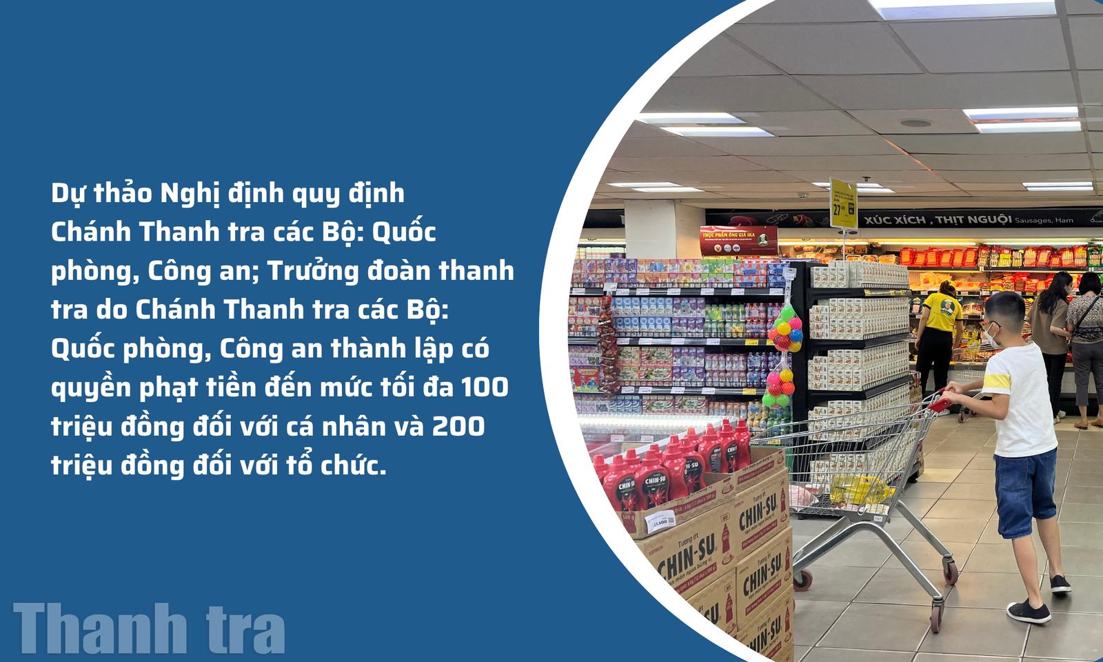 Đáng chú ý, dự thảo Nghị định quy định về thẩm quyền của thanh tra tại Điều 29. Theo đó, Thanh tra viên các Bộ: Quốc phòng, Công an có quyền phạt tiền đến 10 triệu đồng đối với cá nhân và phạt tiền đến 20 triệu đồng đối với tổ chức; tịch thu tang vật, phương tiện vi phạm hành chính có giá trị không vượt quá 2 lần mức tiền phạt nêu trên.
