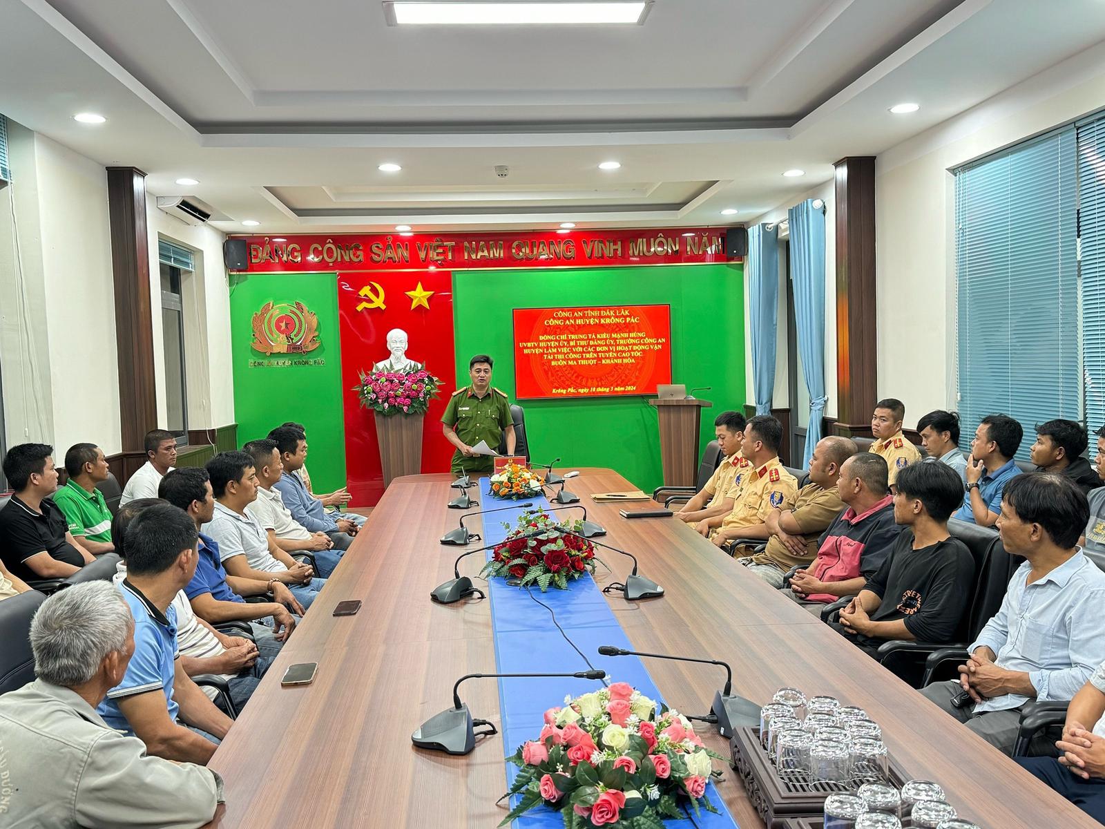 Để làm được việc trên, Công an huyện Krông Pắc đã chủ động tổ chức 2 hội nghị liên quan đến cao tốc. Hội nghị đầu tiên nhằm ký kết quy chế phối hợp bảo đảm an ninh trật tự quá trình thi công cao tốc Khánh Hòa - Buôn Ma Thuột giữa Công an huyện và Ban Quản lý Dự án cao tốc Khánh Hòa - Buôn Ma Thuột (đại diện chủ đầu tư) cùng UBND các xã có cao tốc đi qua.