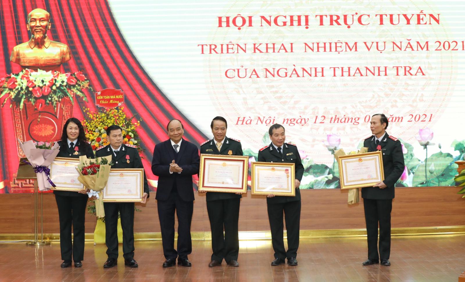 Cũng tại hội nghị, Thủ tướng Chính phủ Nguyễn Xuân Phúc tặng Bằng khen của Thủ tướng Chính phủ cho Thanh tra Chính phủ vì đã có thành tích trong công tác phòng, chống tham nhũng từ năm 2013 đến năm 2020.