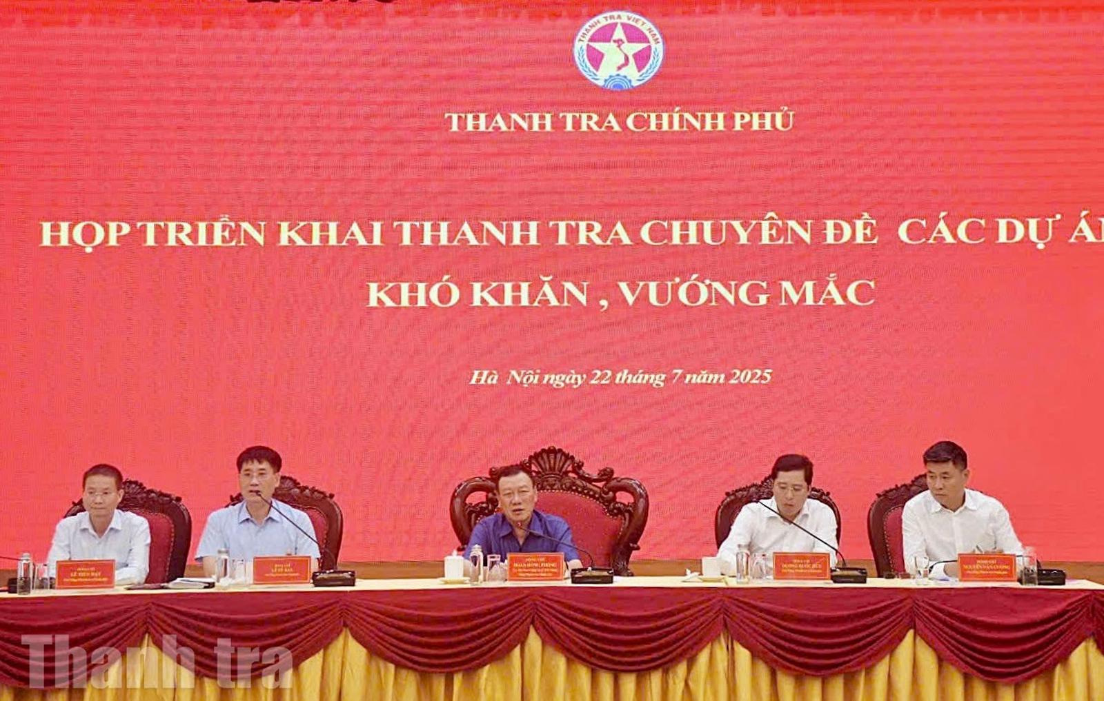 Tổng Thanh tra Chính phủ Đoàn Hồng Phong chủ trì cuộc họp triển khai thanh tra chuyên đề các dự án có khó khăn, vướng mắc. Ảnh: T.H