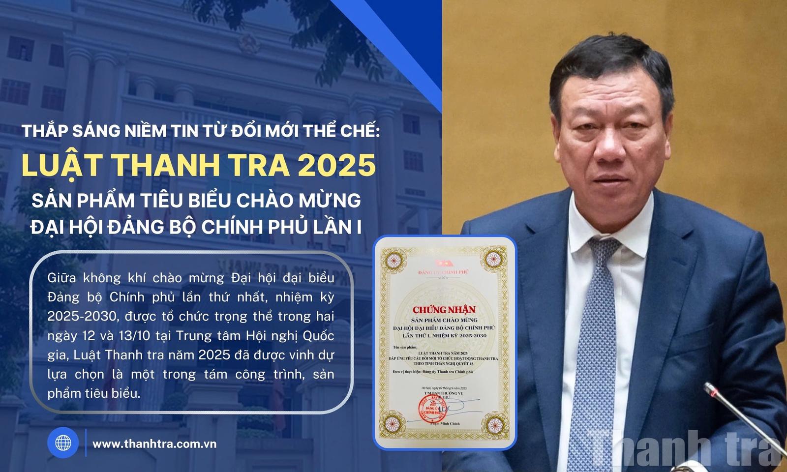 Năm 2025, ngành Thanh tra đã tổ chức thành công Đại hội Đảng bộ Thanh tra Chính phủ lần thứ nhất, nhiệm kỳ 2025-2030 sau khi hoàn tất việc sắp xếp tổ chức bộ máy theo mô hình mới.
