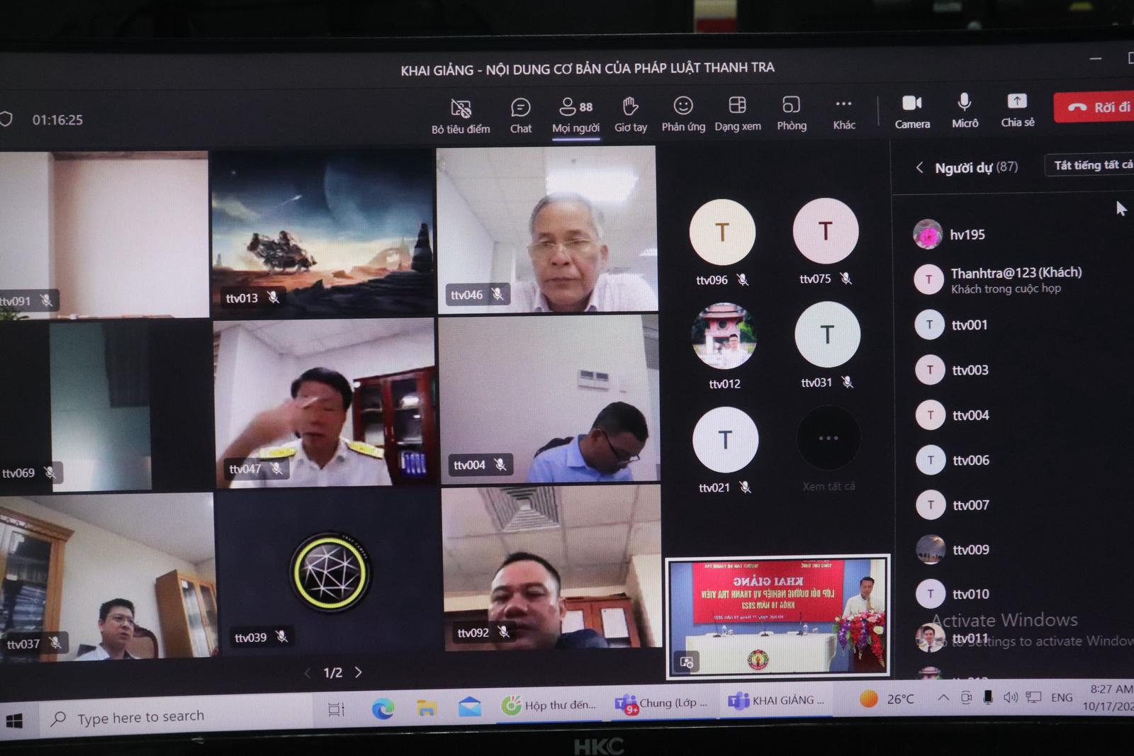 (Thanh tra)- Ngày 17/10, Trường Cán bộ Thanh tra đã khai giảng lớp nghiệp vụ thanh tra viên K18/2023 theo hình thức trực tuyến cho 105 học viên là cán bộ, công chức trong ngành Thuế đến từ 28 tỉnh thành trên cả nước.