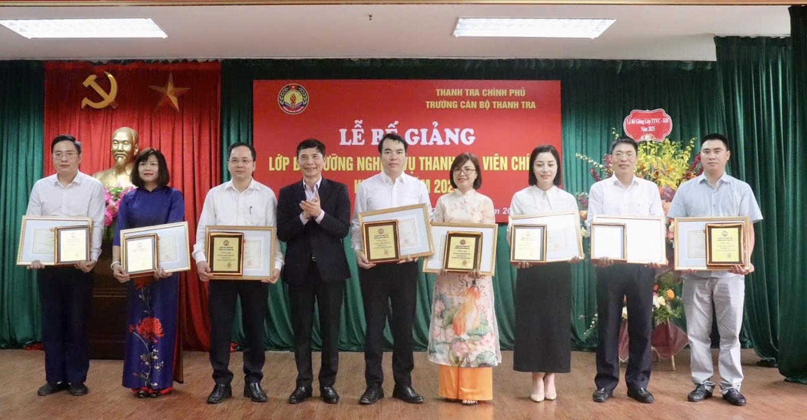 Kết thúc khoá học, 100% học viên đủ điều kiện được Hiệu trưởng Trường Cán bộ Thanh tra cấp chứng chỉ hoàn thành khóa học. Căn cứ vào kết quả khoá học, 8 học viên có thành tích xuất sắc trong học tập và công tác lớp đã được Hiệu trưởng Trường Cán bộ Thanh tra khen tặng.