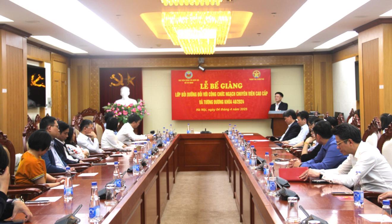 (Thanh tra) - Chiều ngày 4/4/2025, tại Thanh tra Chính phủ, Học viện Quốc gia Hồ Chí Minh phối hợp với Thanh tra Chính phủ đã tổ chức bế giảng lớp bồi dưỡng ngạch chuyên viên cao cấp và tương đương khóa 48/2024 đối với cán bộ, công chức, viên chức thuộc Thanh tra Chính phủ.