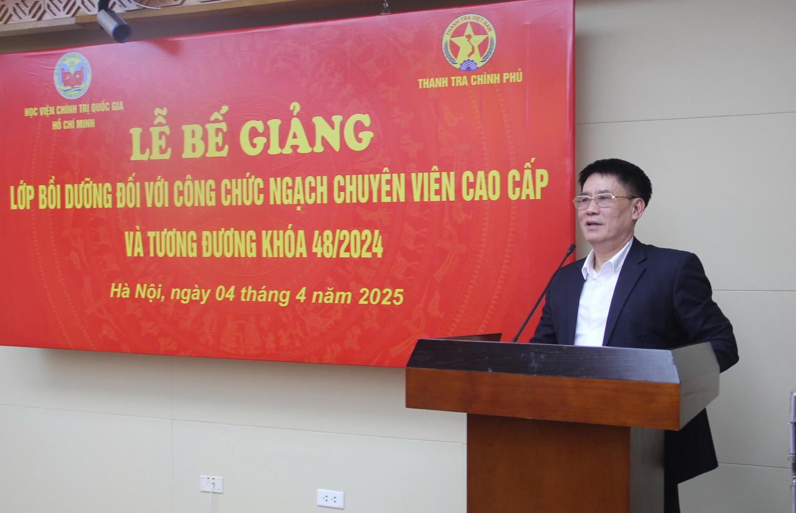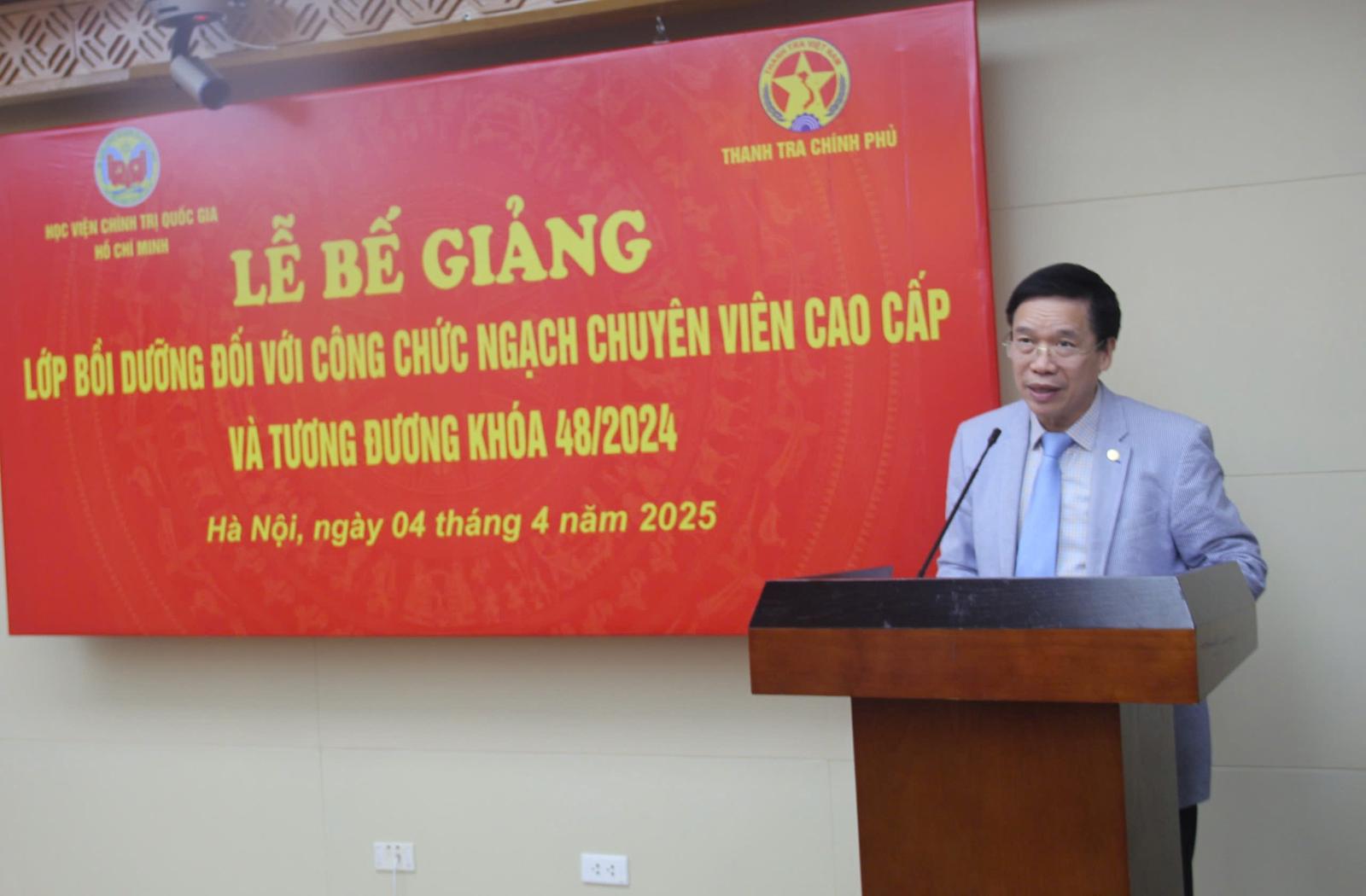 Phát biểu bế giảng khoá học, thay mặt lãnh đạo Thanh tra Chính phủ, Phó tổng Thanh tra Lê Sỹ Bảy chúc mừng các học viên hoàn thành khoá học và được nhận chứng chỉ.
