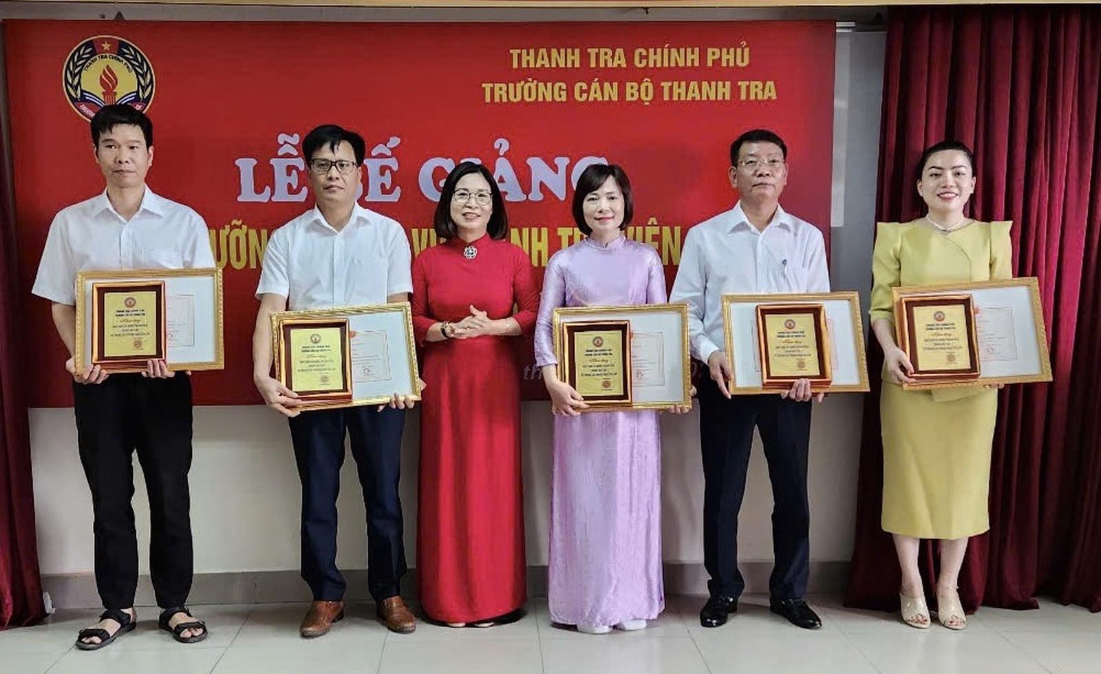 Các học viên có thành tích xuất sắc trong học tập và công tác lớp được Hiệu trưởng Trường Cán bộ Thanh tra khen tặng. Ảnh: TN