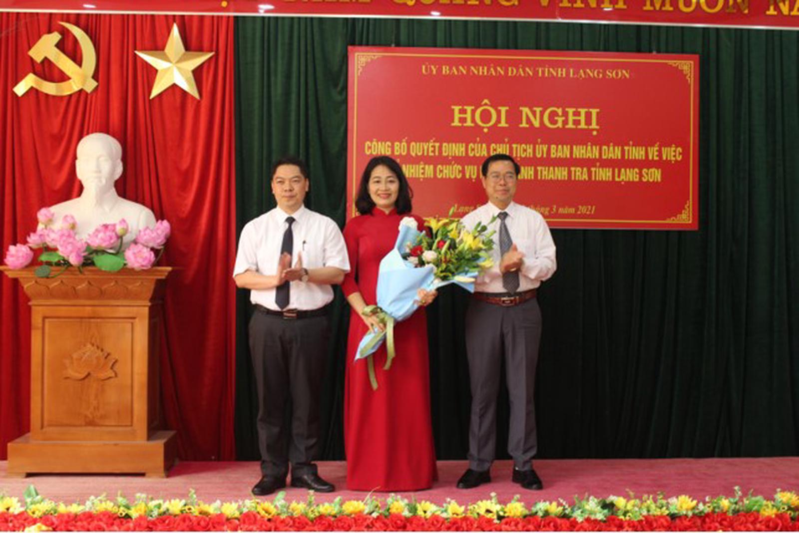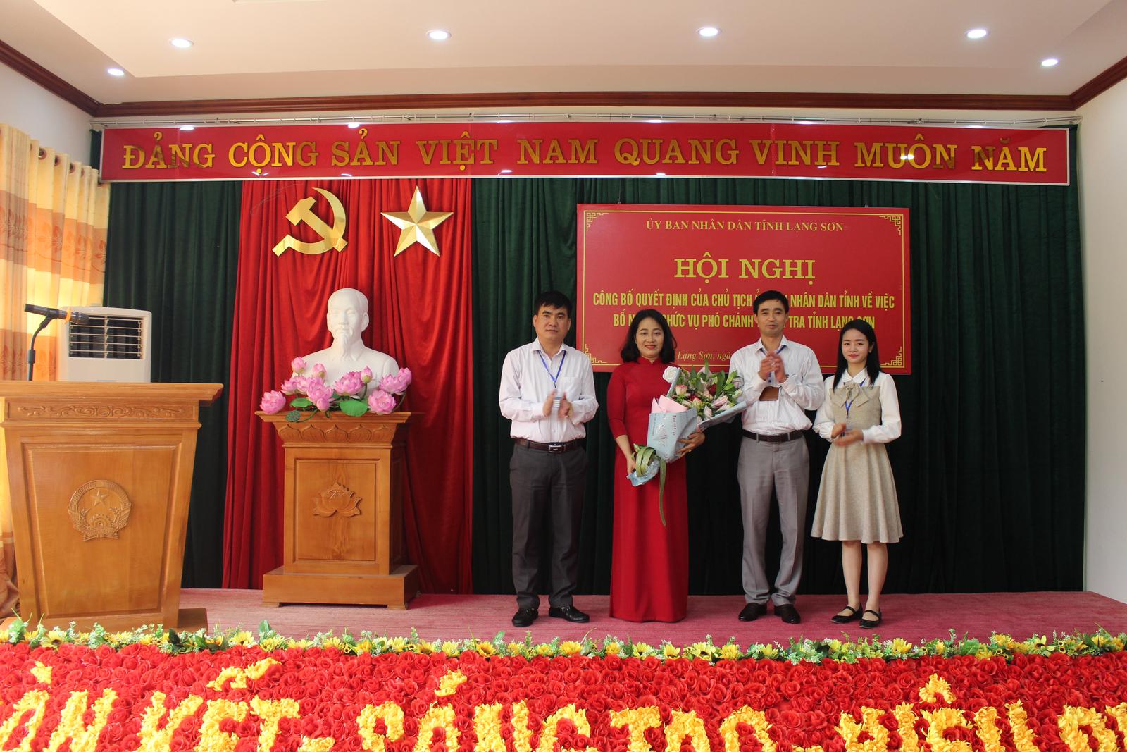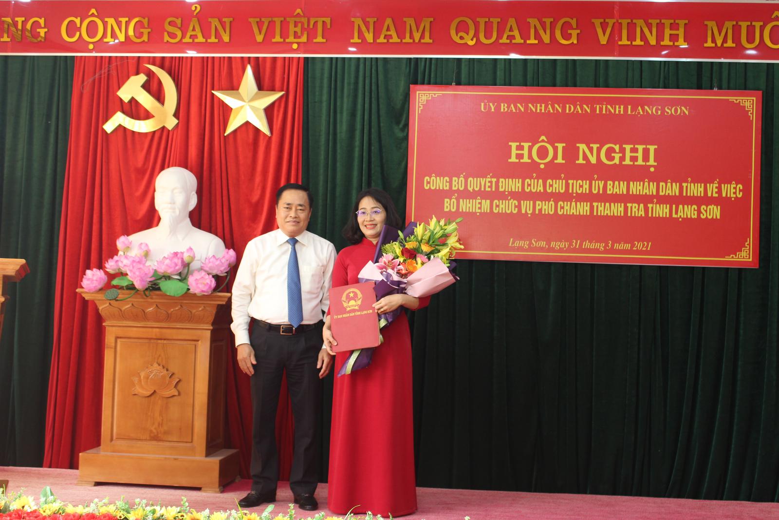 Tặng hoa và chúc mừng đồng chí Nguyễn Mai Loan, Ủy viên Ban Thường vụ, Trưởng ban Nội chính tỉnh Đoàn Thanh Sơn tin tưởng tân Phó Chánh Thanh tra tỉnh Lạng Sơn sẽ tiếp tục phát huy thành tích đã đạt được, hoàn thành xuất sắc nhiệm vụ được giao.