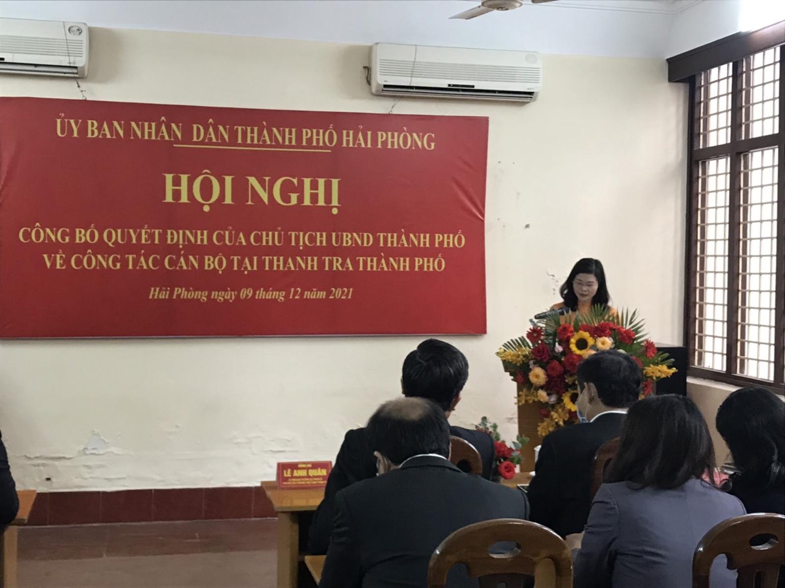(Thanh tra) - Sáng 9/12, UBND thành phố Hải Phòng tổ chức Hội nghị công bố quyết định của Chủ tịch UBND thành phố về công tác cán bộ tại Thanh tra thành phố.