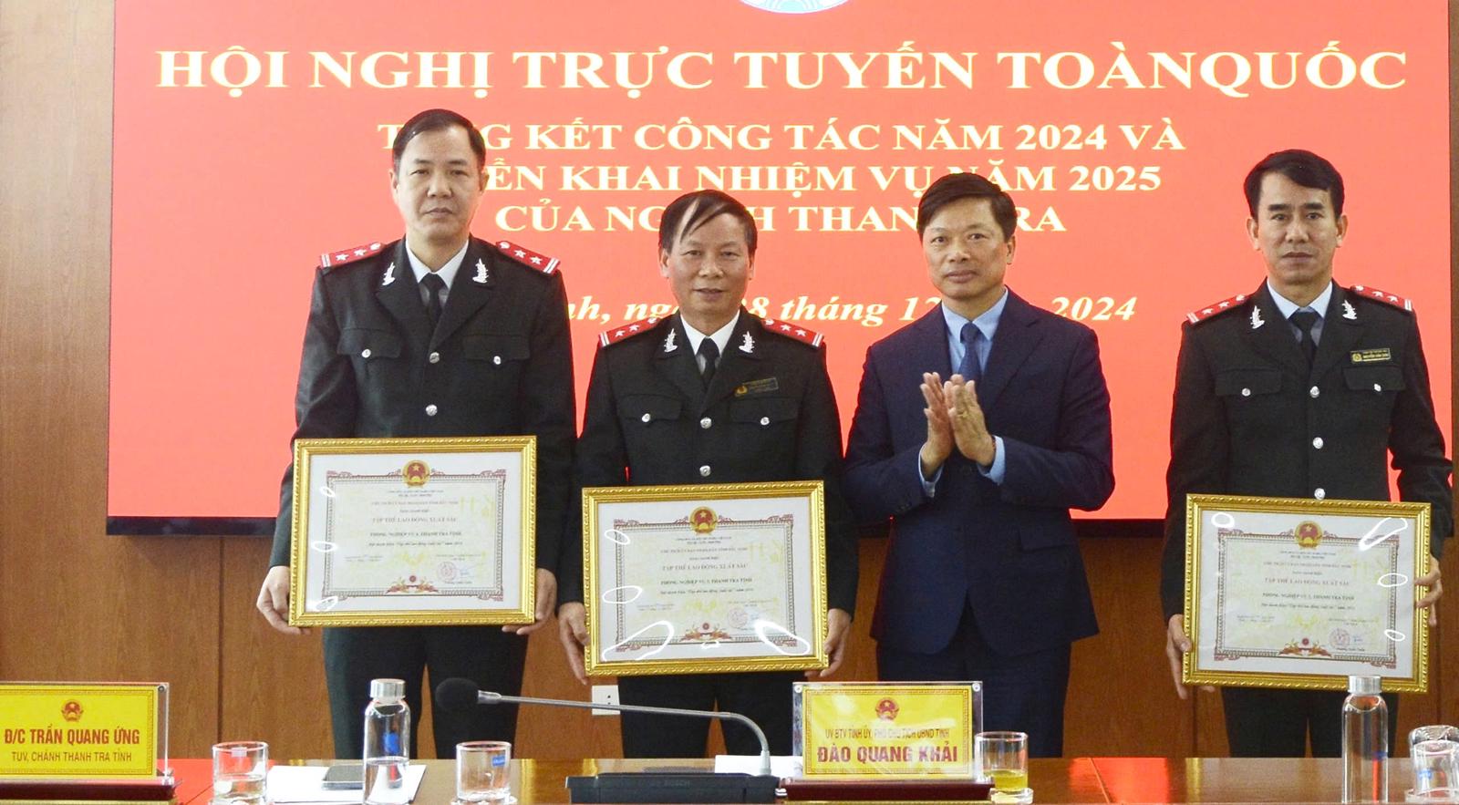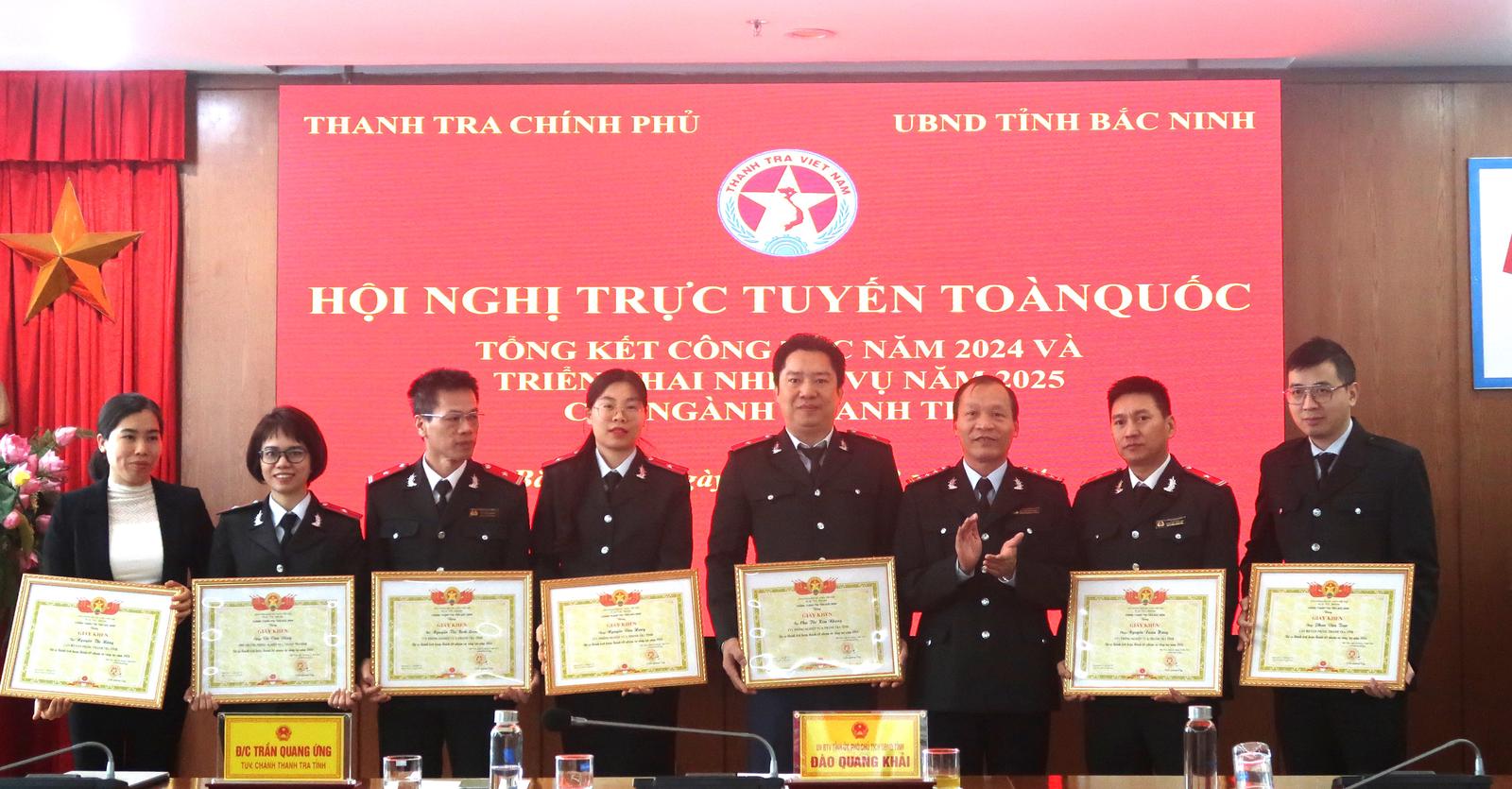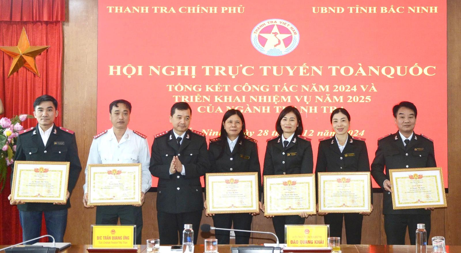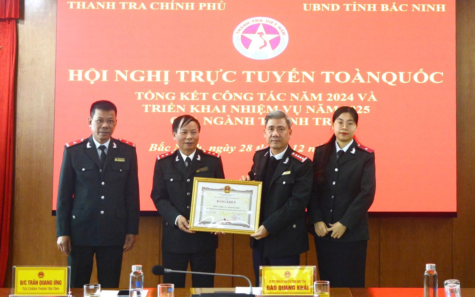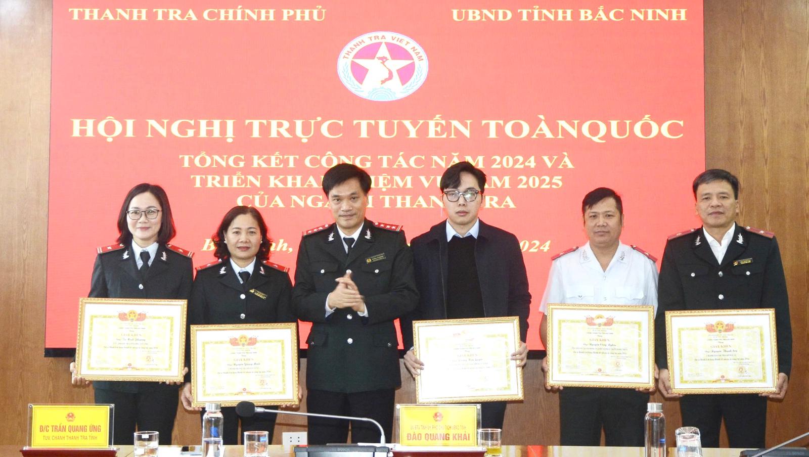 Tại hội nghị, Phó Chủ tịch UBND tỉnh Bắc Ninh Đào Quang Khải đã trao tặng danh hiệu Tập thể Lao động xuất sắc năm 2024 cho 4 tập thể, gồm: Thanh tra tỉnh Bắc Ninh và Phòng nghiệp vụ 2, Phòng Nghiệp vụ 3, Phòng Nghiệp vụ 4 của Thanh tra tỉnh.