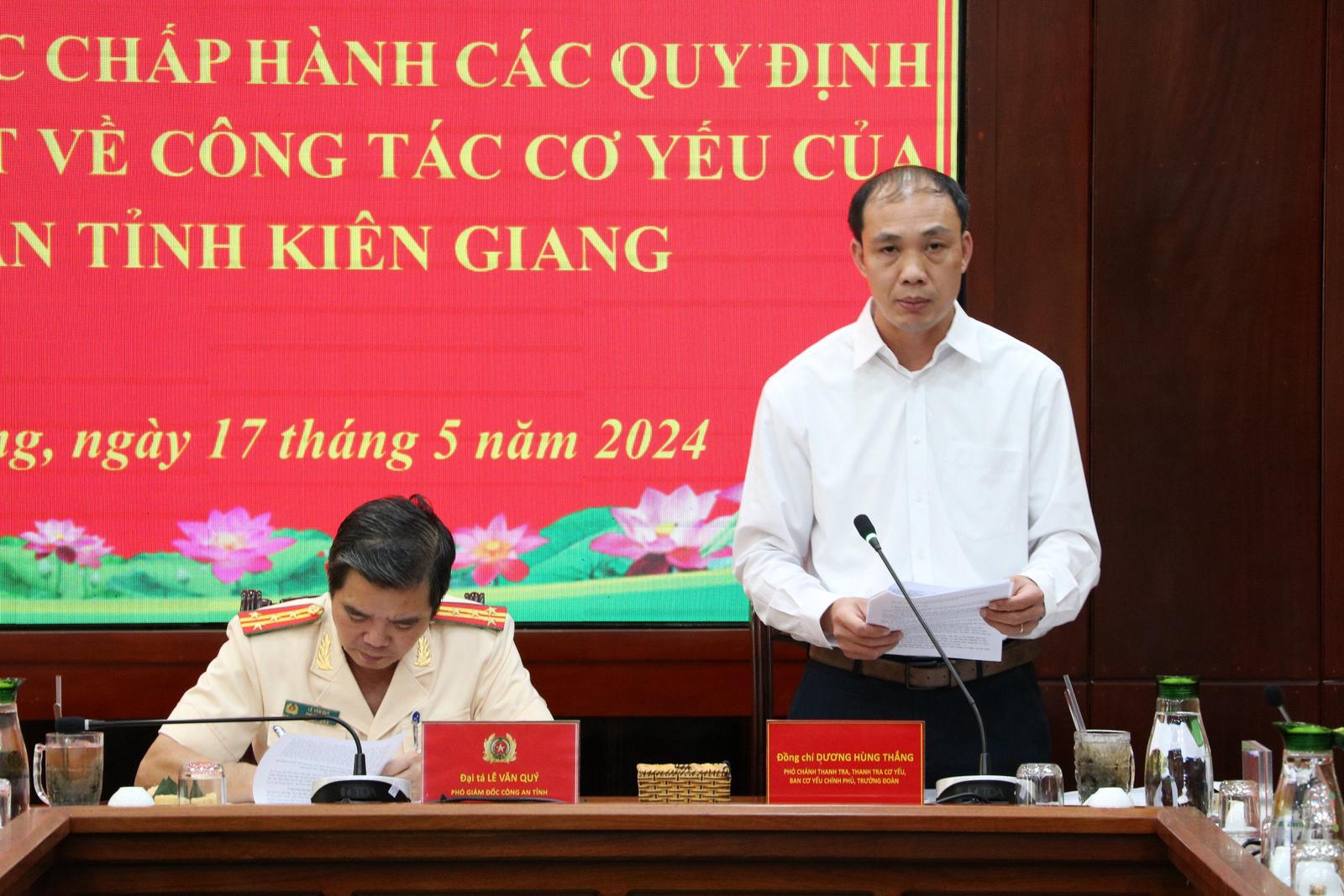 Đồng chí Dương Hùng Thắng công bố quyết định thanh tra tại Công an tỉnh Kiên Giang. Ảnh: Thanh tra Cơ yếu, Ban Cơ yếu Chính phủ