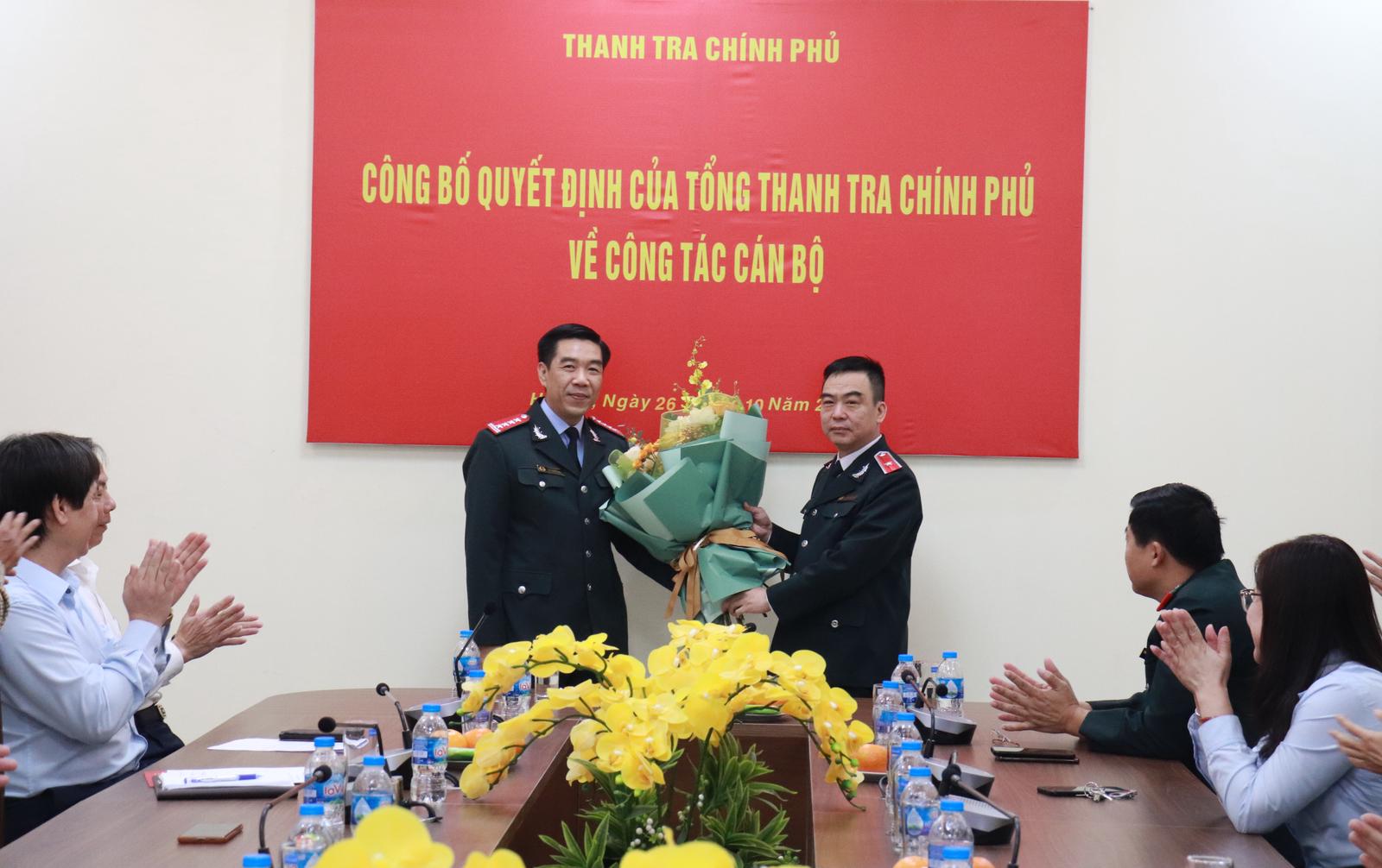 Phó Tổng Thanh tra Trần Ngọc Liêm trao quyết định bổ nhiệm của Tổng Thanh tra cho tân Phó Trưởng Ban Tiếp công dân Trung ương Trần Quốc Dũng. Ảnh: TH